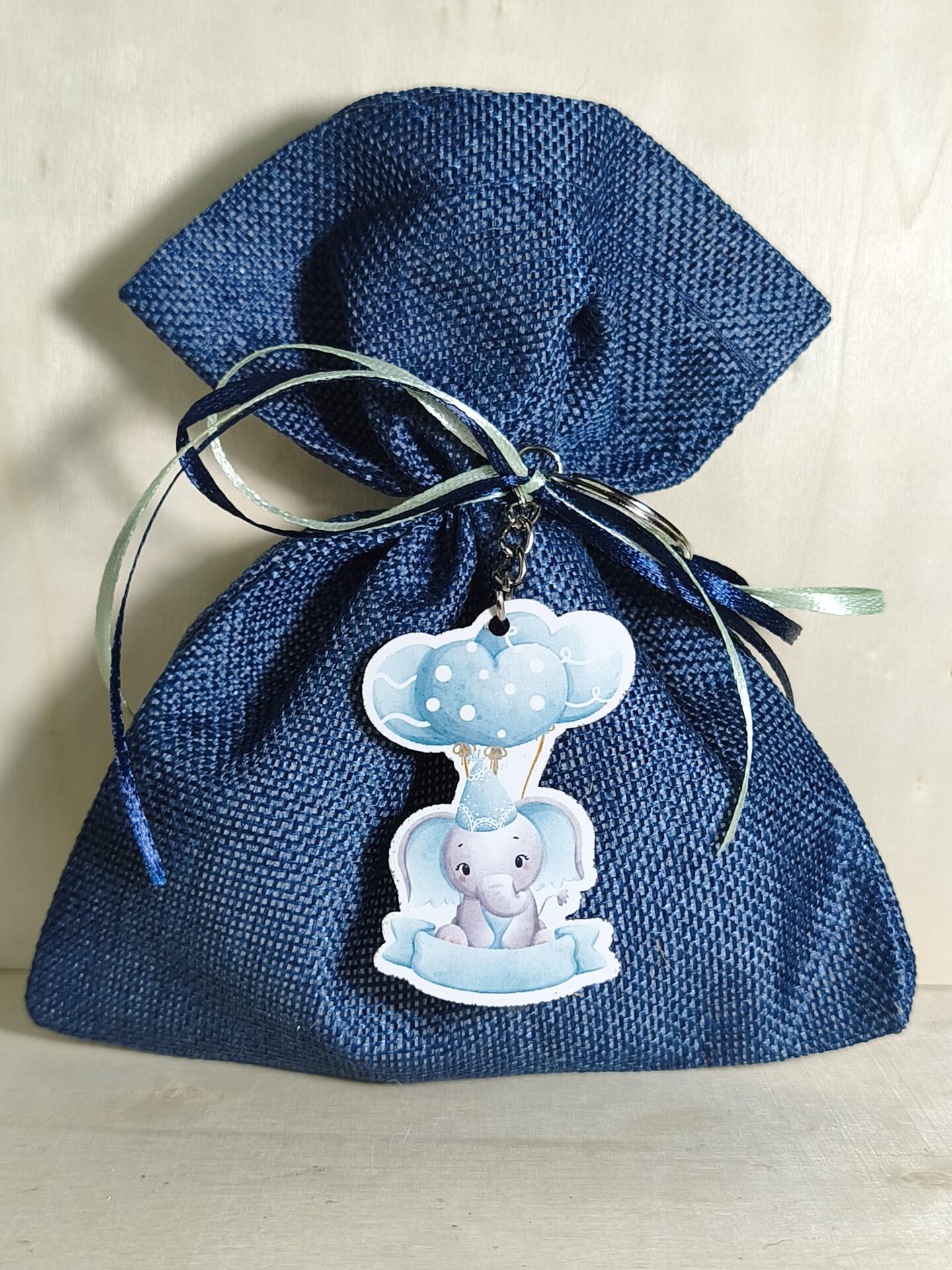Mπομπονιερα Βαπτισης Πουγκι Καμβας+Ελεφαντακι Μπαλονια Μπρελοκ