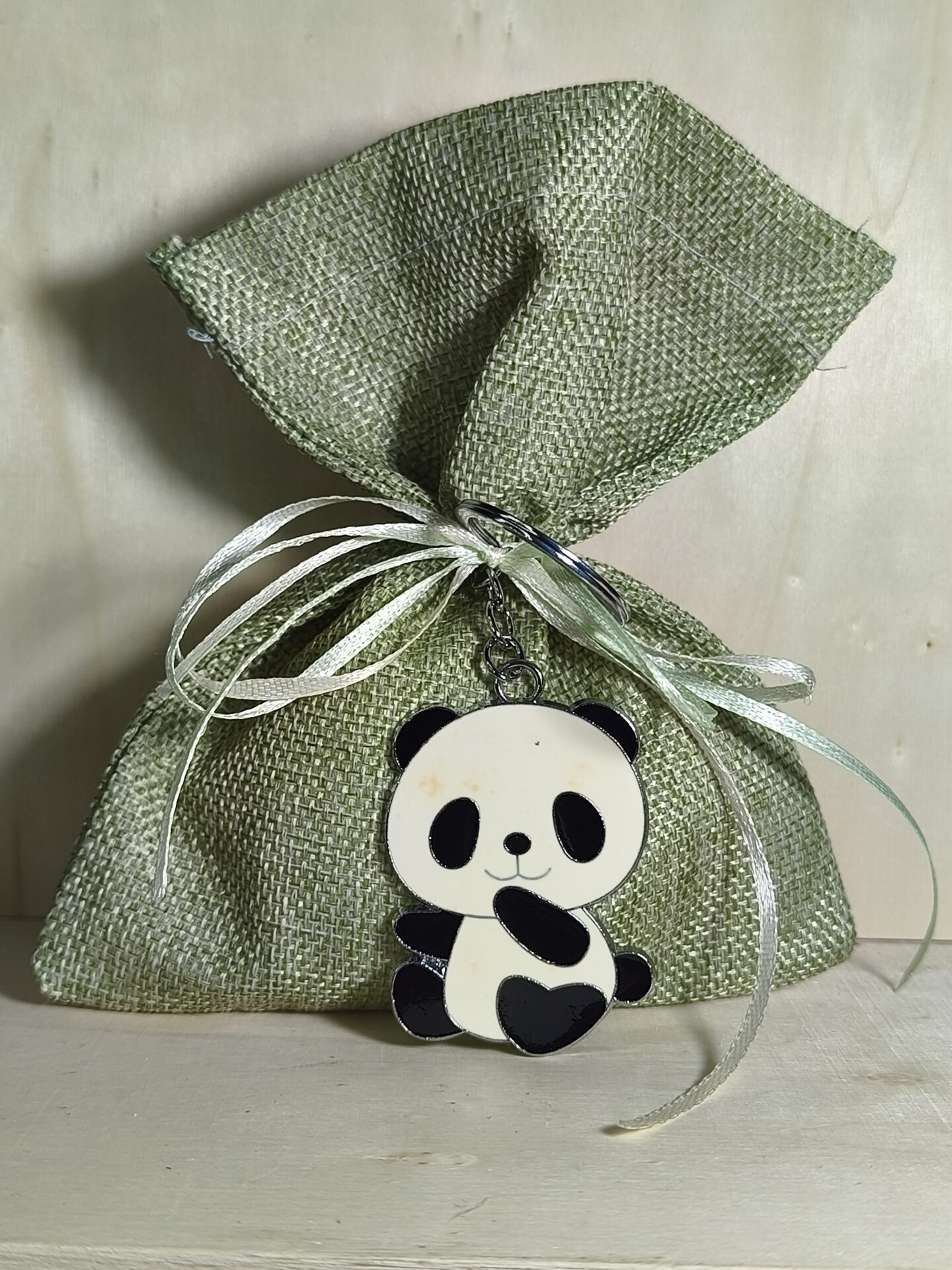 Mπομπονιερα Βαπτισης Πουγκι Καμβας+Panda Μπρελοκ