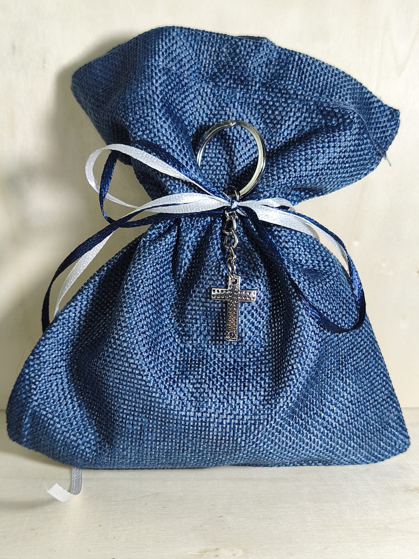 Mπομπονιερα Βαπτισης Πουγκι Καμβας+Κορωνα Μπρελοκ