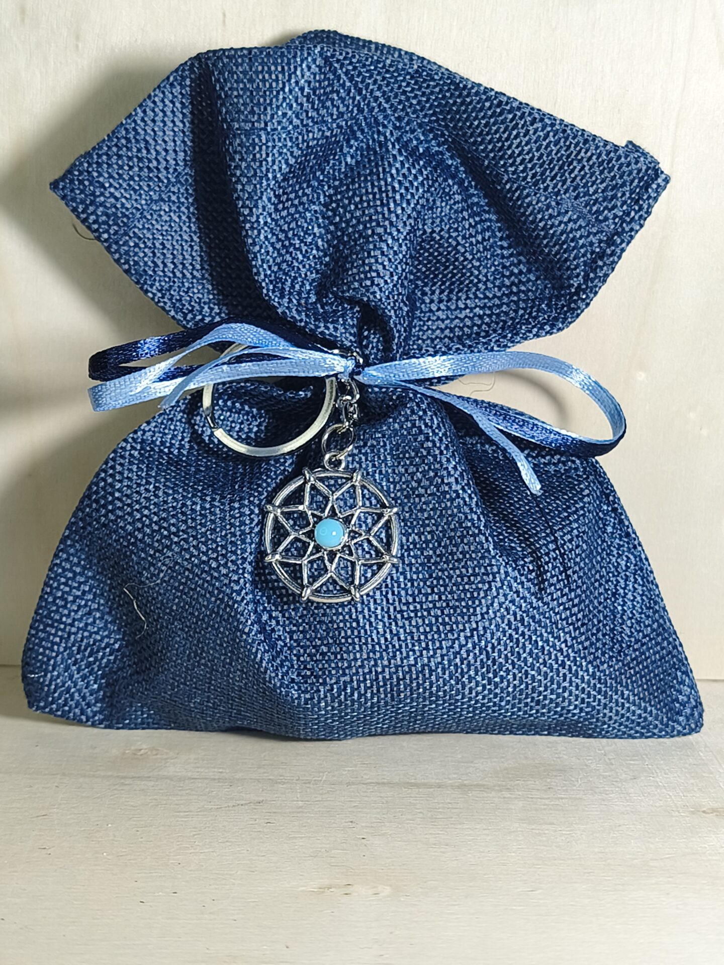 Mπομπονιερα Βαπτισης Πουγκι Καμβας+Ονειροπαγιδα Μπρελοκ