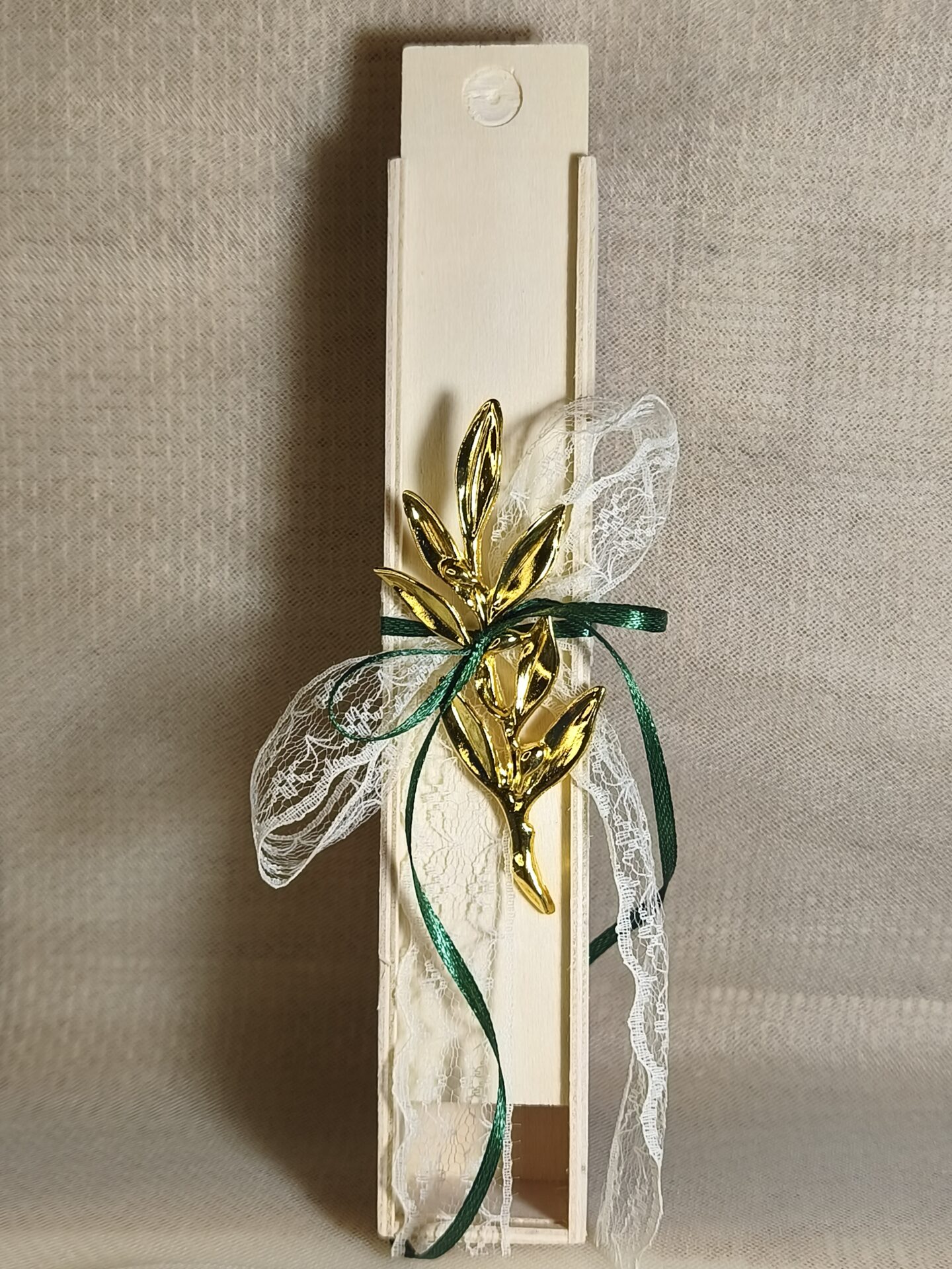 Mπομπονιερα Γαμου Kουτακι Σε Φυσικο Προσκλητηριου+Κλαδι Ελιας