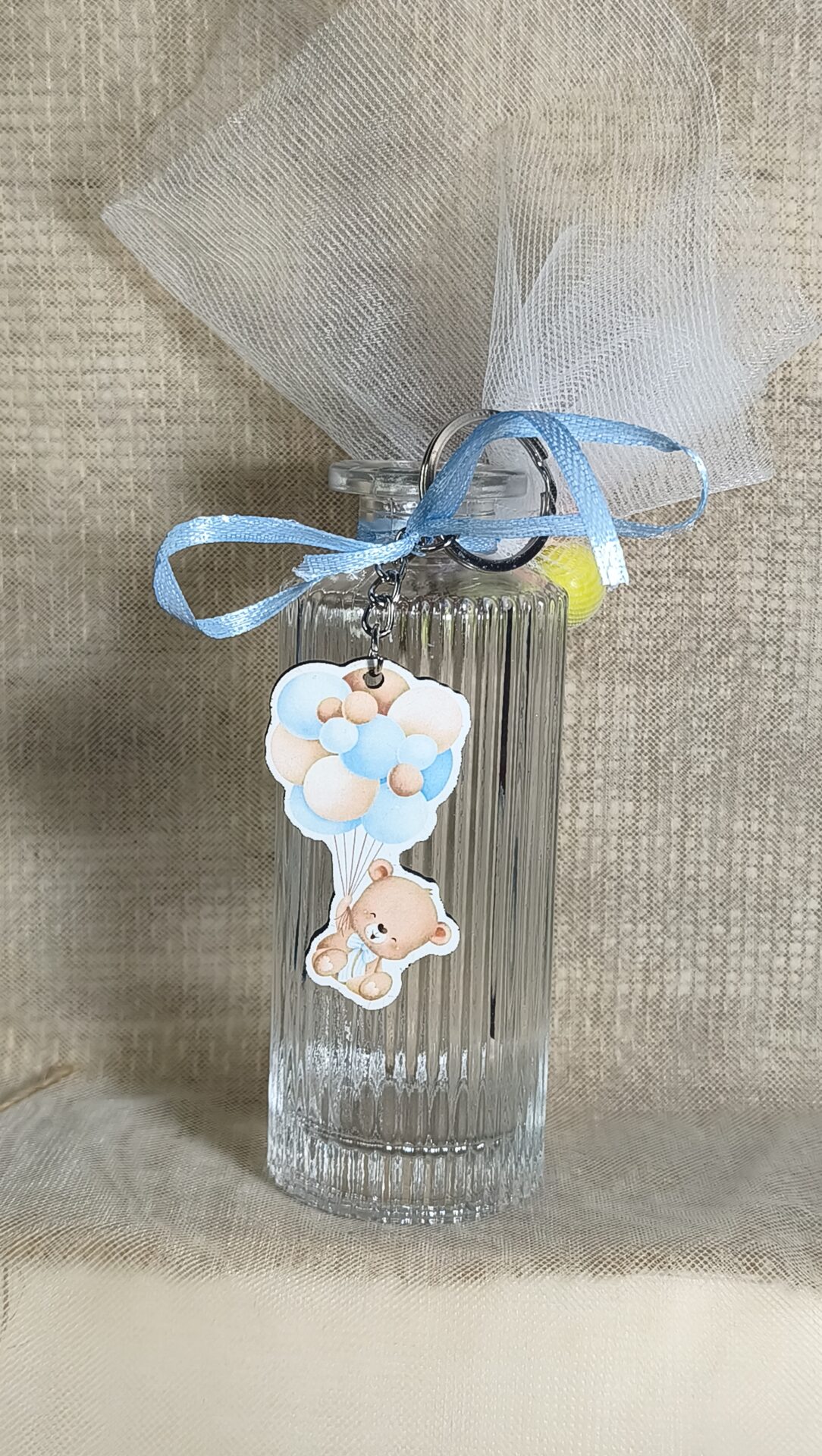 Μπομπονιερα Βαπτισης Βαζακι Αναγλυφο 200ml+Αρκουδακι Μπαλονια Μπρελοκ