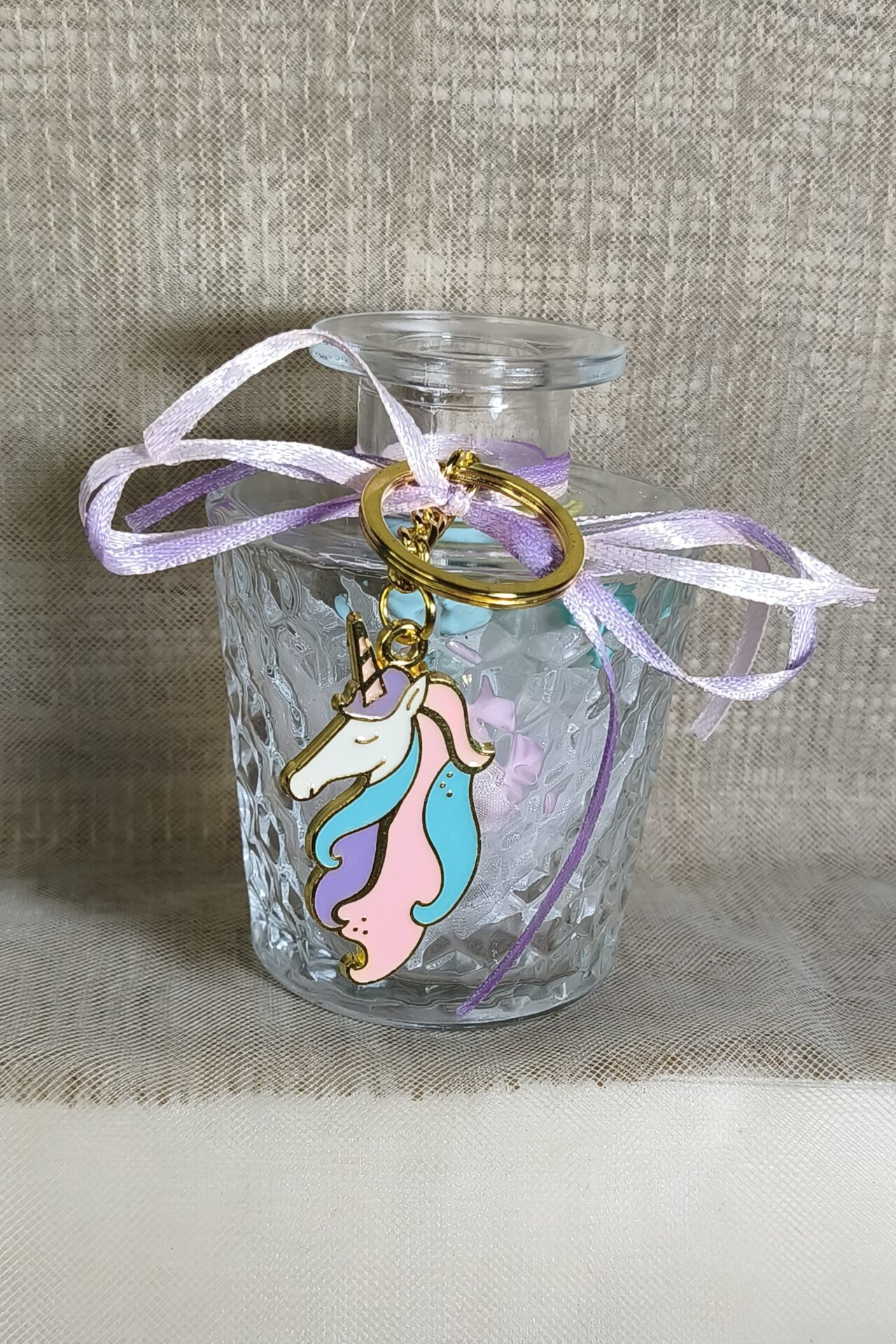 Μπομπονιερα Βαπτισης Βαζακι 250ml+Μονοκερος Μπρελοκ