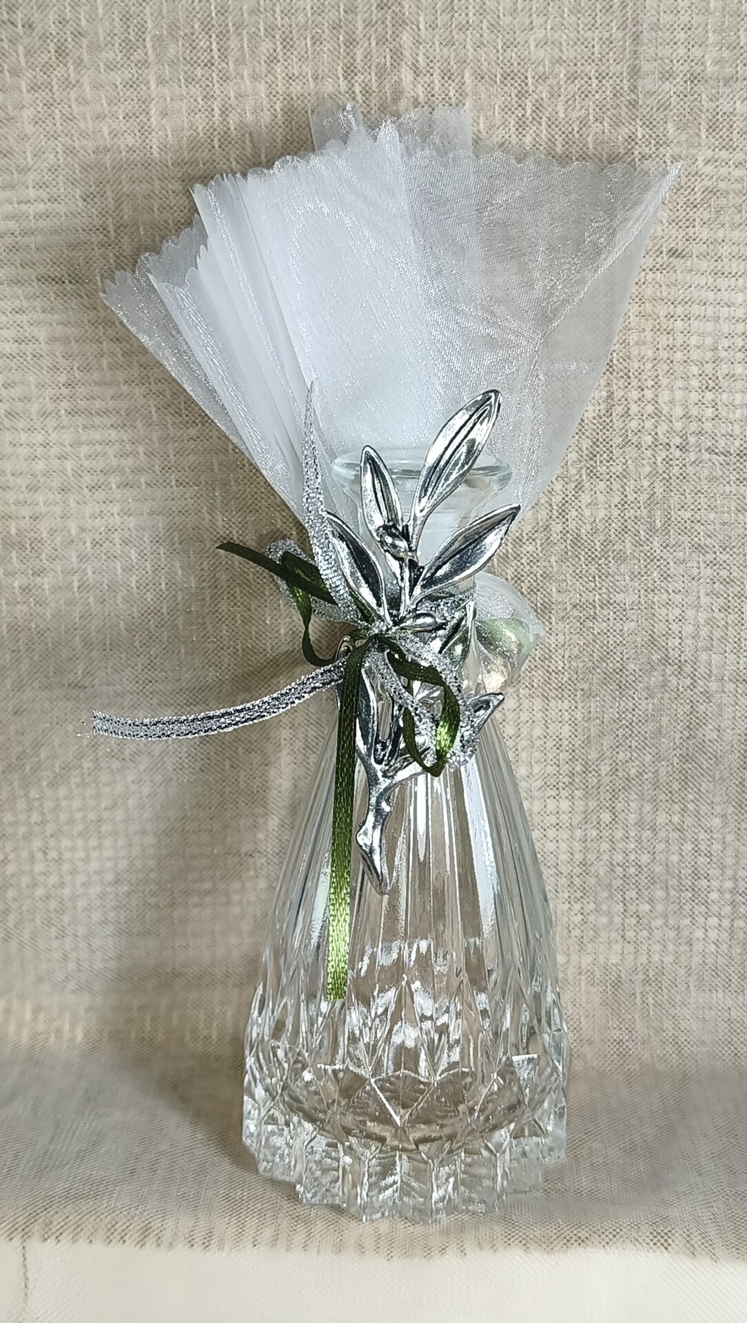 Mπομπονιερα Βαπτισης Βαζακι Αναγλυφο 300ml+Κλαδι Ελιας