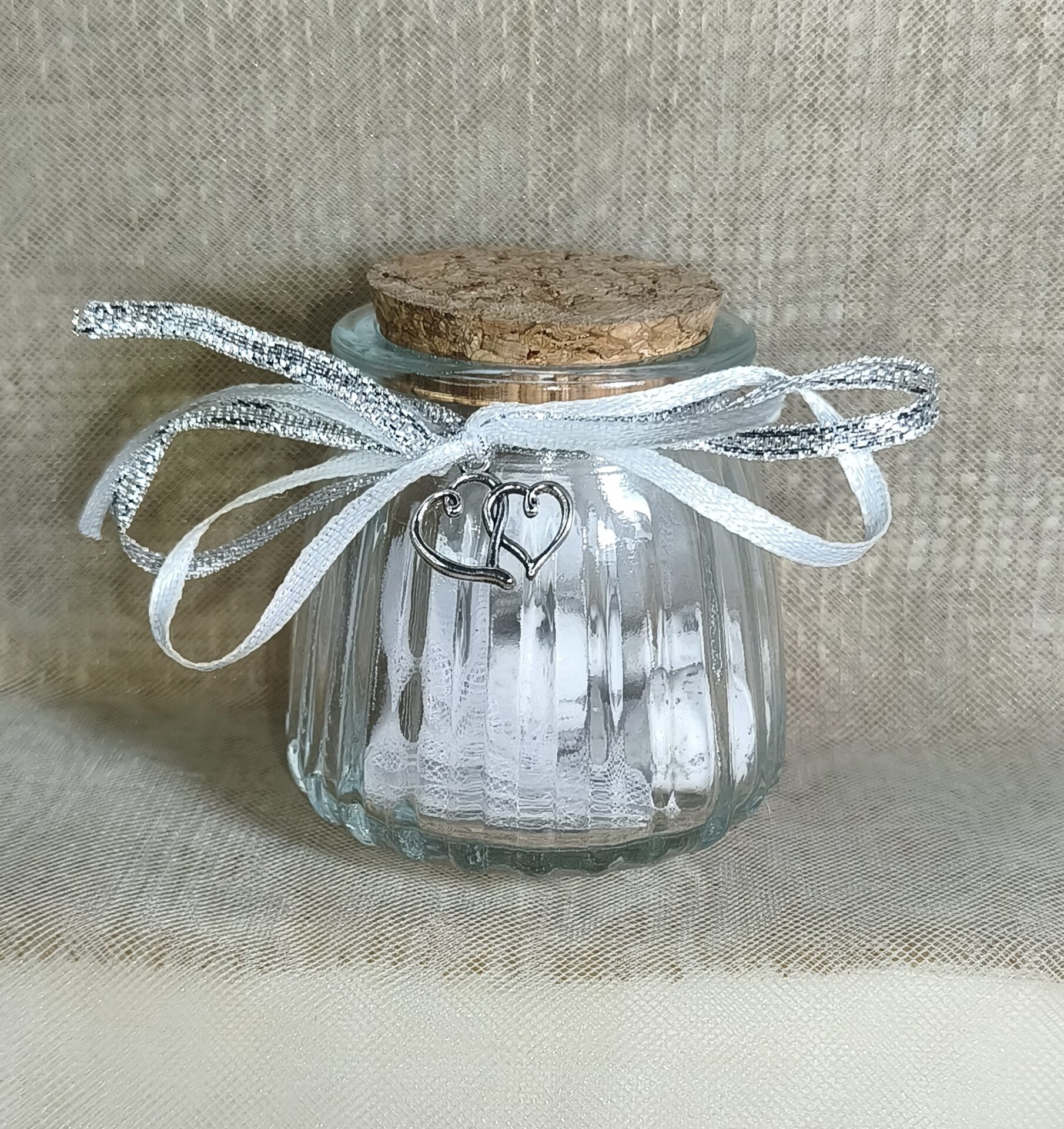 Mπομπονιερα Γαμου Τουλι Ασημι