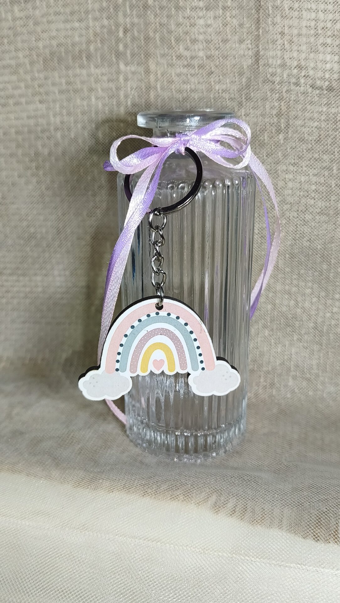 Μπομπονιερα Βαπτισης Βαζακι Αναγλυφο 200ml+Ουρανιο Τοξο Μπρελοκ