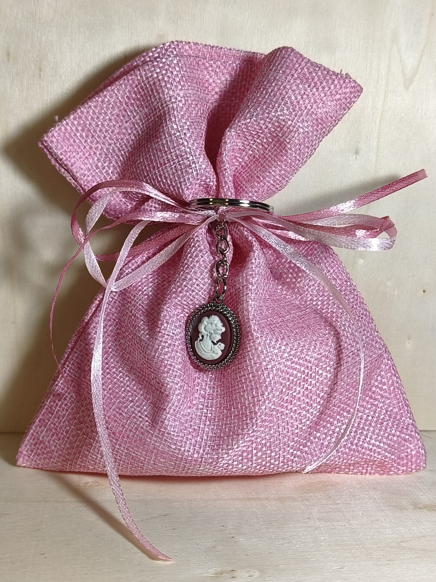 Mπομπονιερα Βαπτισης Πουγκι Καμβας+Κοριτσακι vintage Μπρελοκ