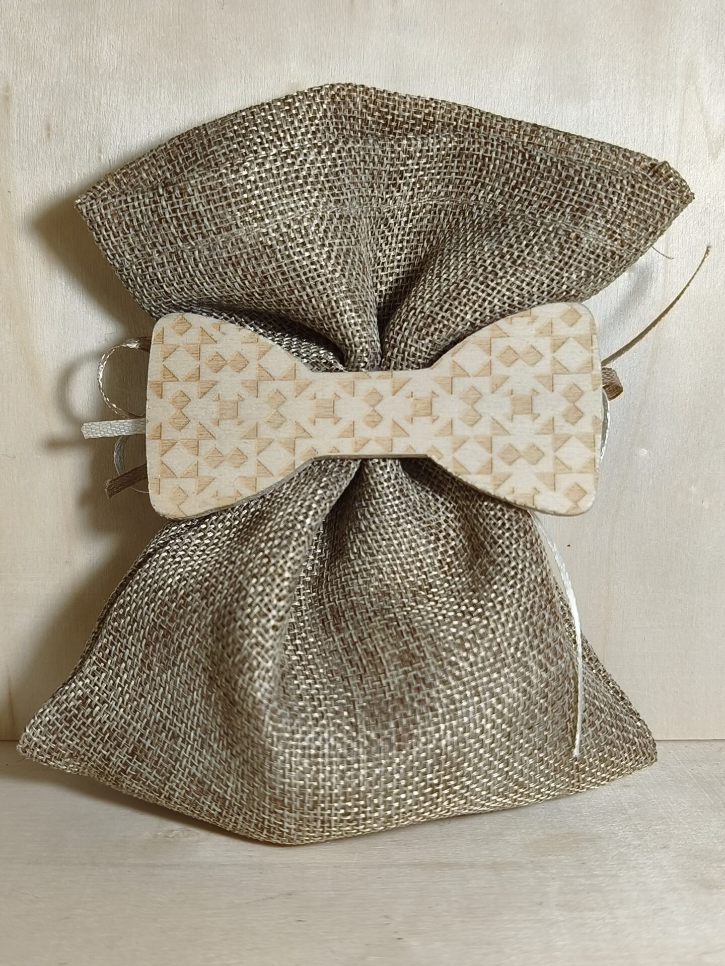 Mπομπονιερα Βαπτισης Πουγκι Καμβας+Παπιον Μαγνητακι