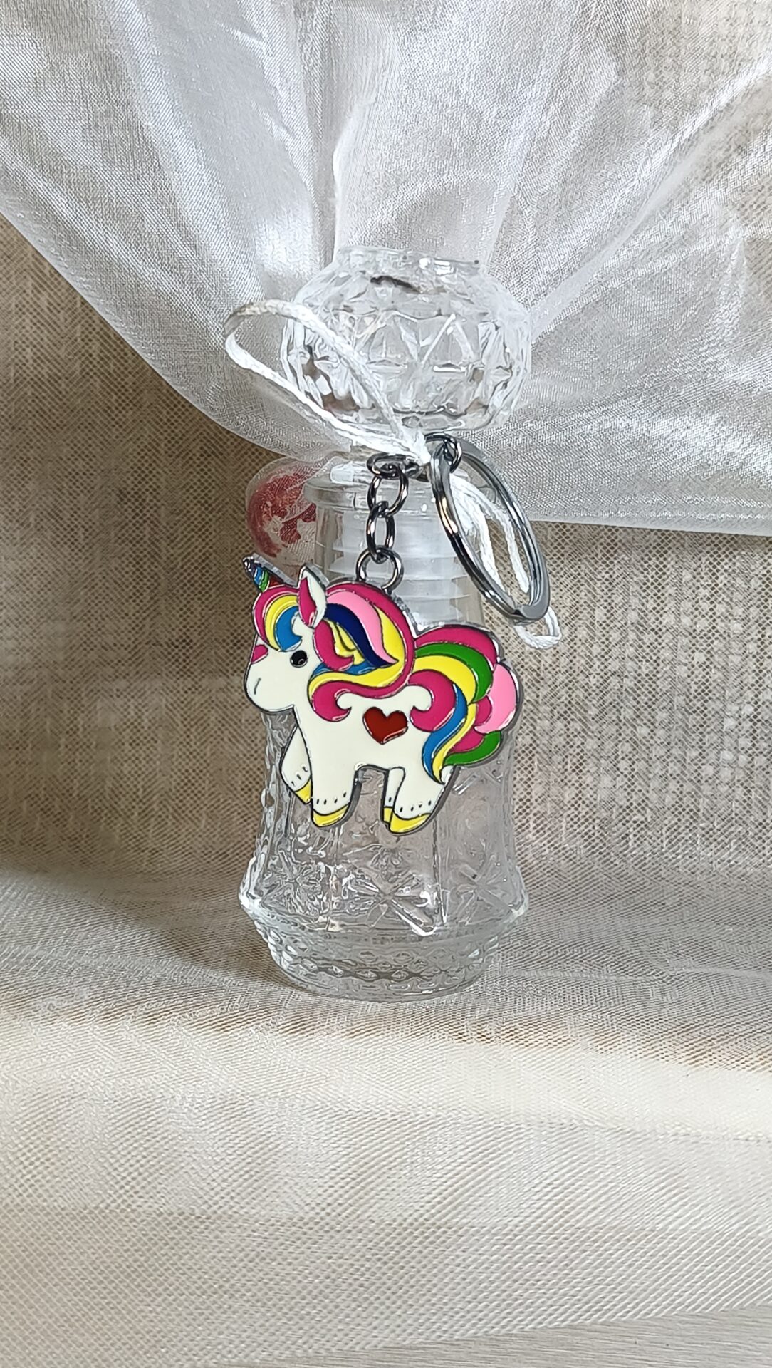 Mπομπονιερα Βαπτισης Μπουκαλι 50ml+Μονοκερος Μπρελοκ