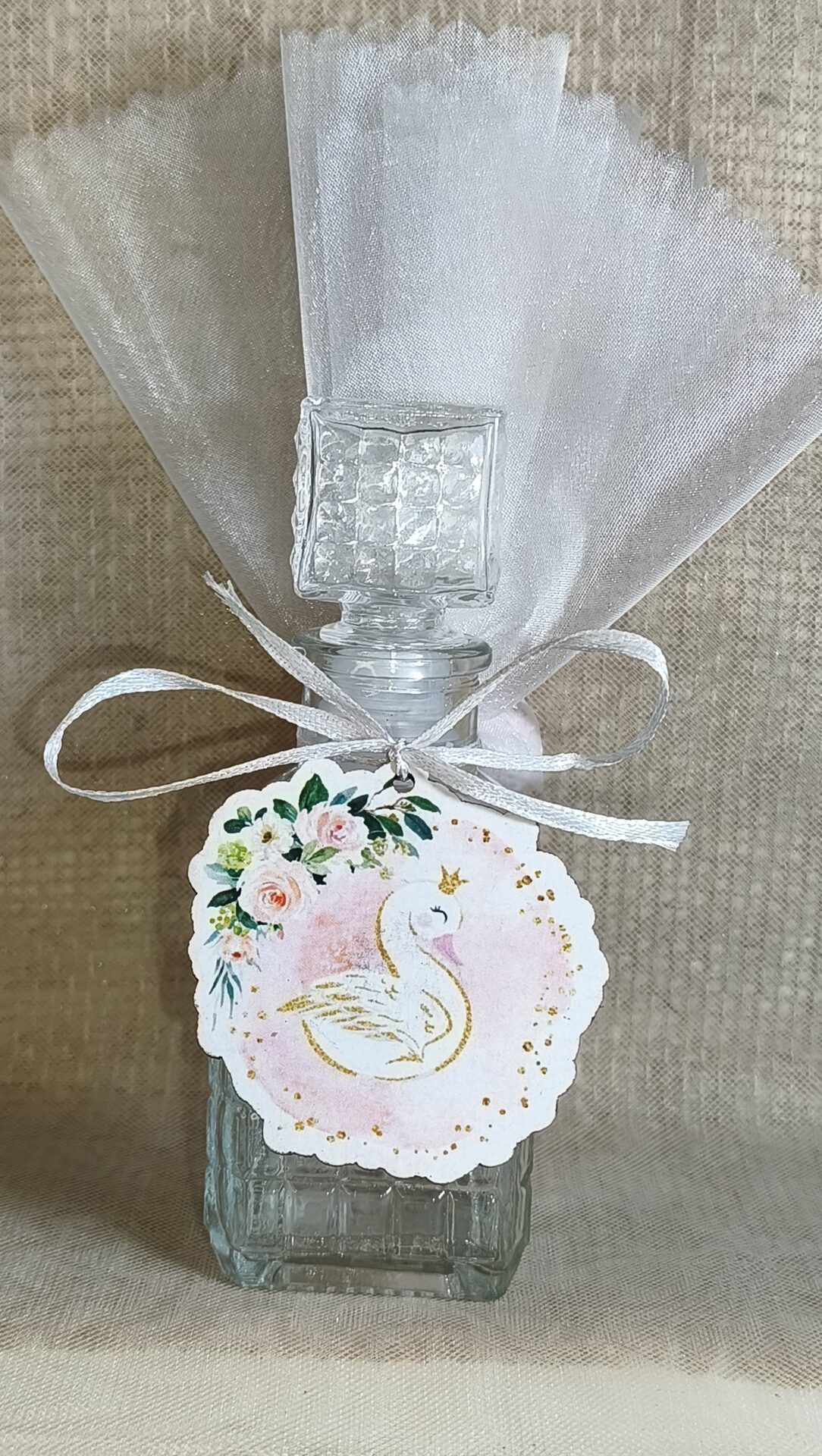 Mπομπονιερα Βαπτισης Μπουκαλι 100ml+Κυκνος Μαγνητακι