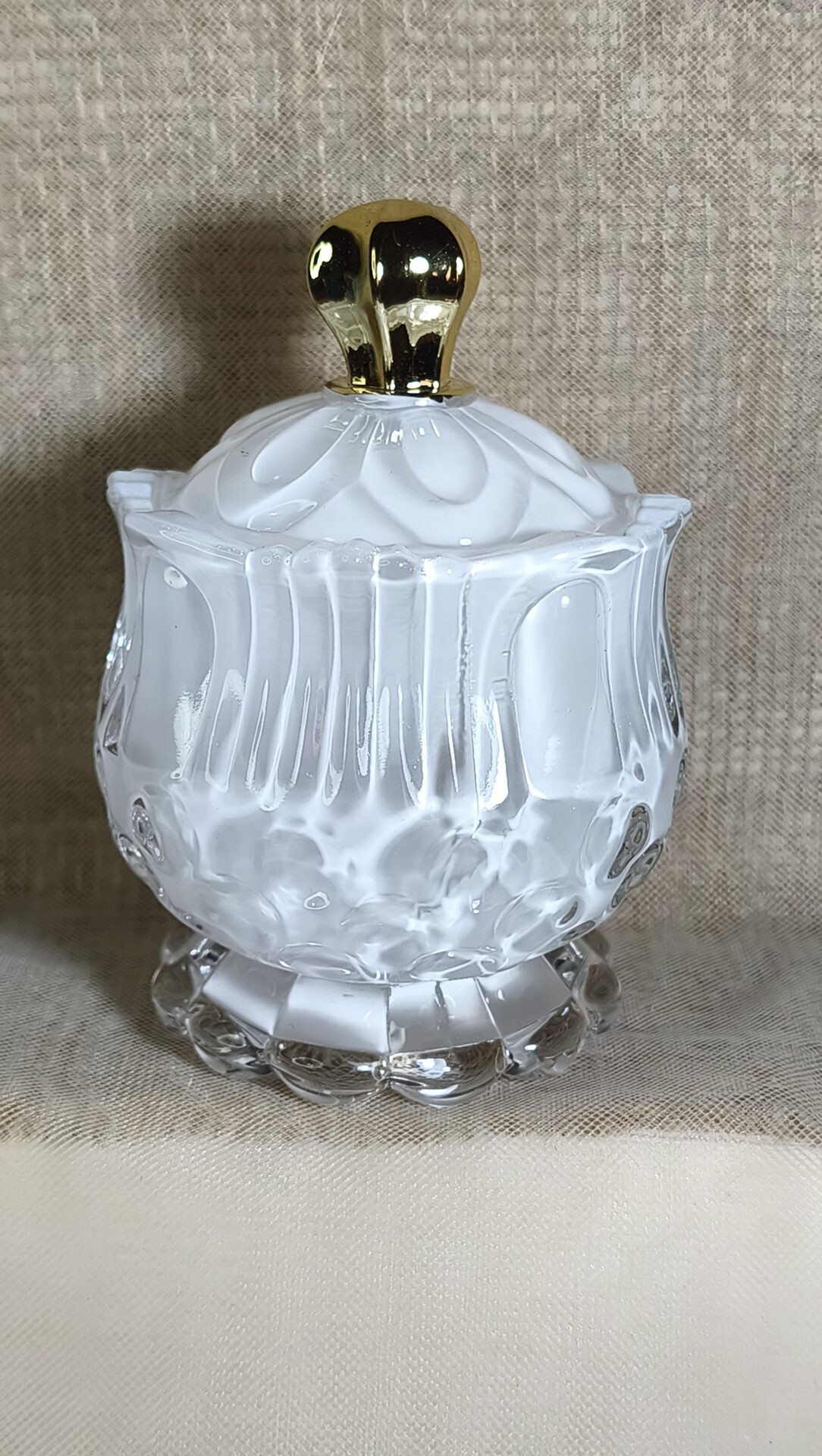 Μπομπονιερα Φοντανιερα Πομπε Λευκo Γυαλι Με Χρυσο Καπακι