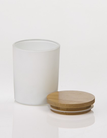 Μπομπονιερα Βαζακι με ξυλινο Καπακι Λευκο