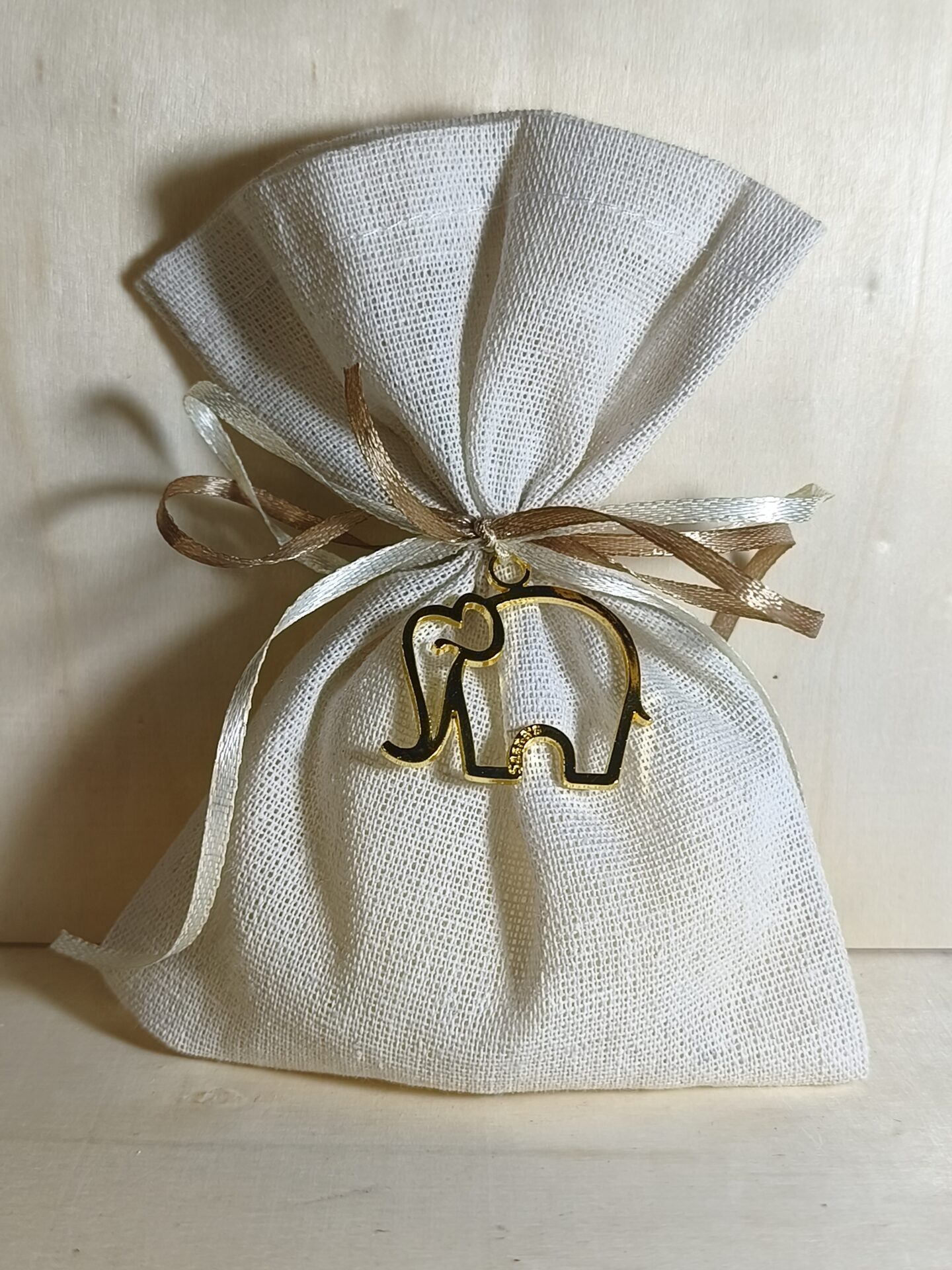 Mπομπονιερα Βαπτισης Πουγκι Λινο+Ελεφαντακι