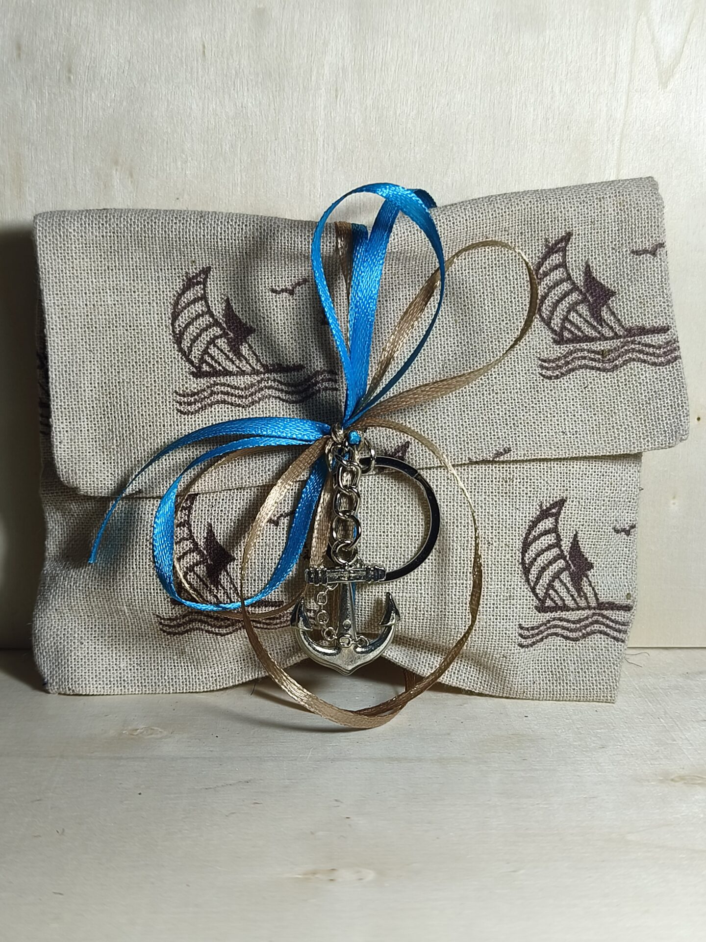 Mπομπονιερα Βαπτισης Πουγκι Καραβι+Αγκυρα Μπρελοκ