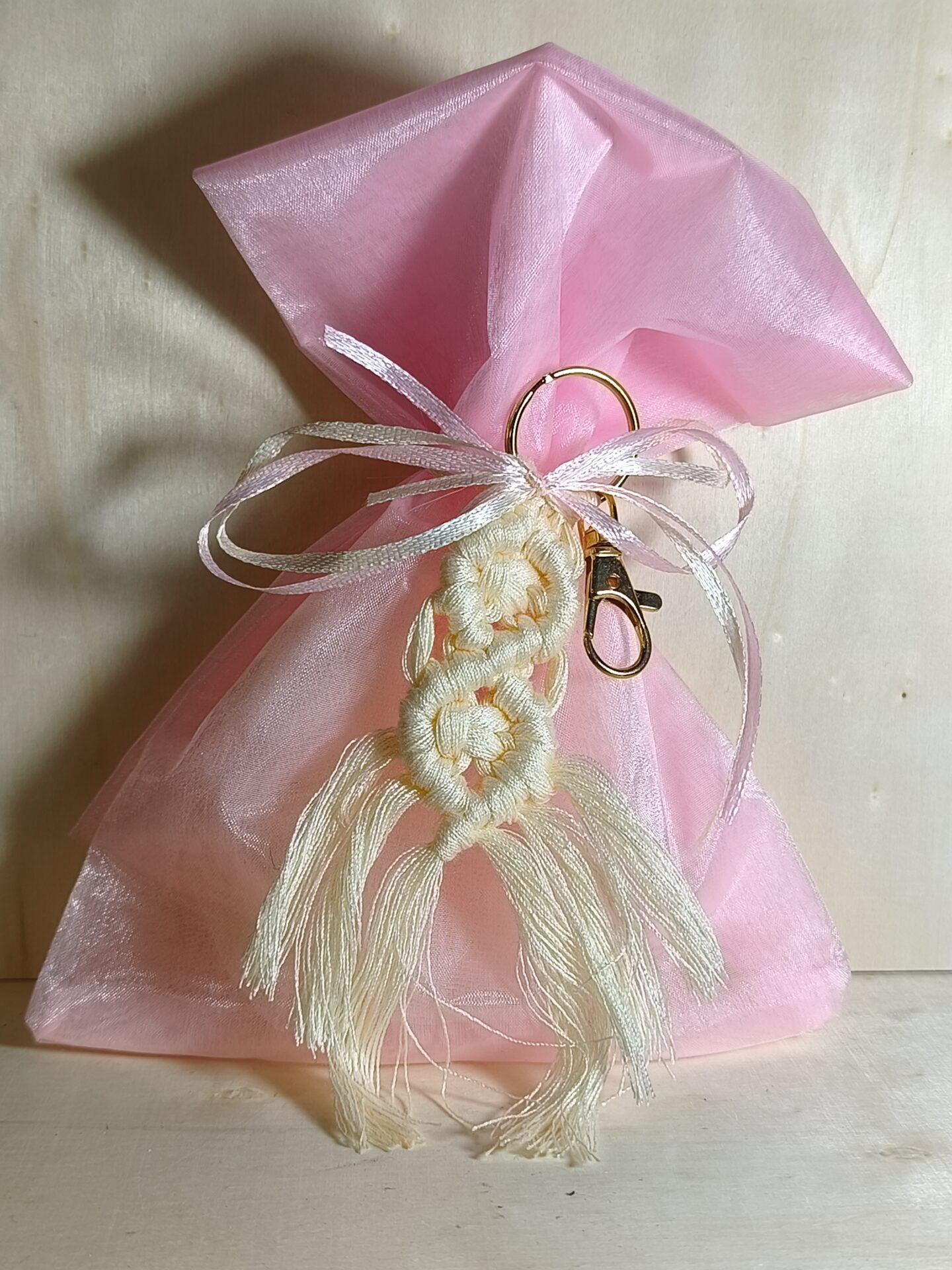 Mπομπονιερα Βαπτισης Πουγκι Οργαντινα+Μακραμε Μπρελοκ