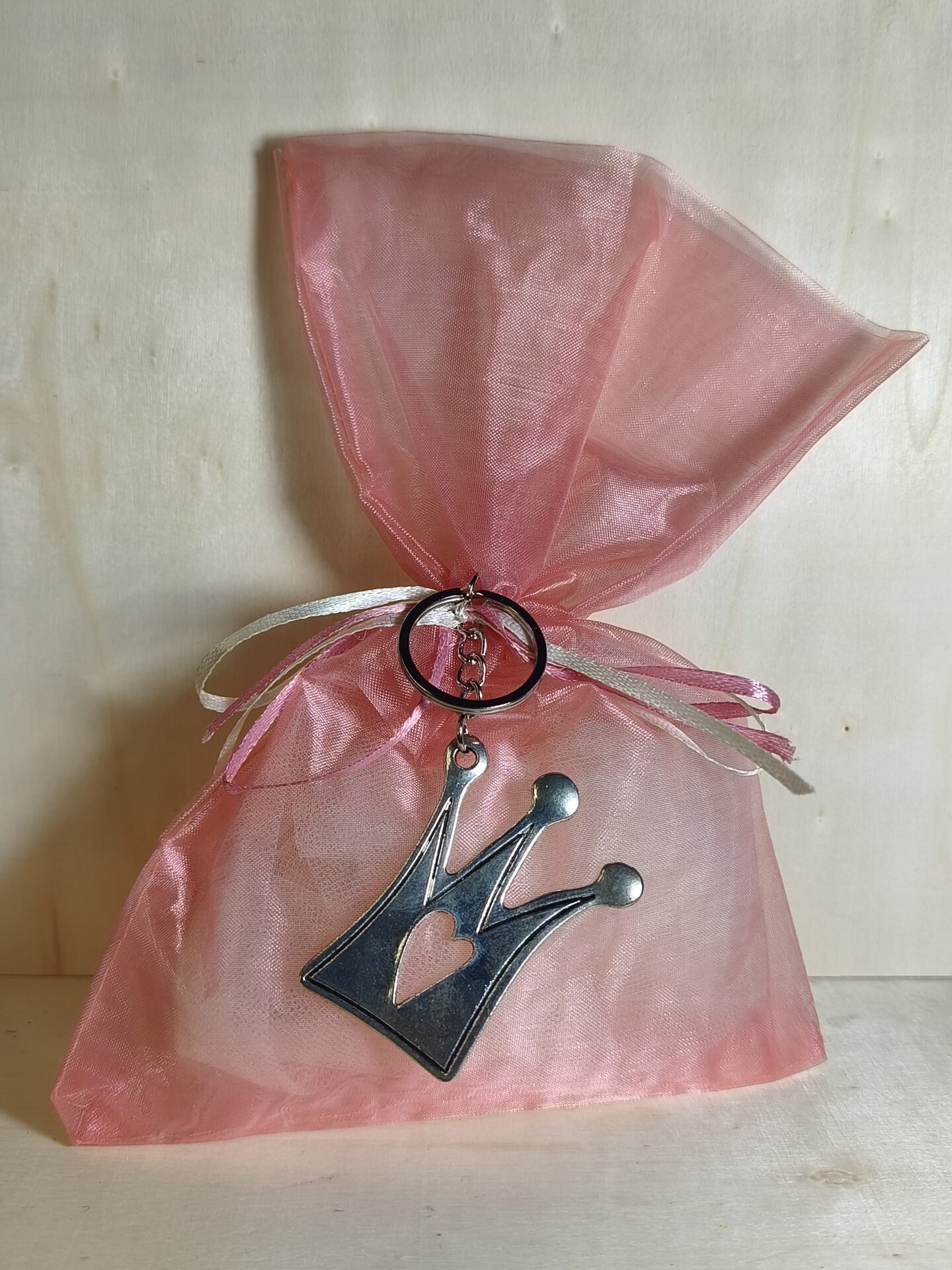Mπομπονιερα Βαπτισης Πουγκι Οργαντινα+Κορωνα Μπρελοκ