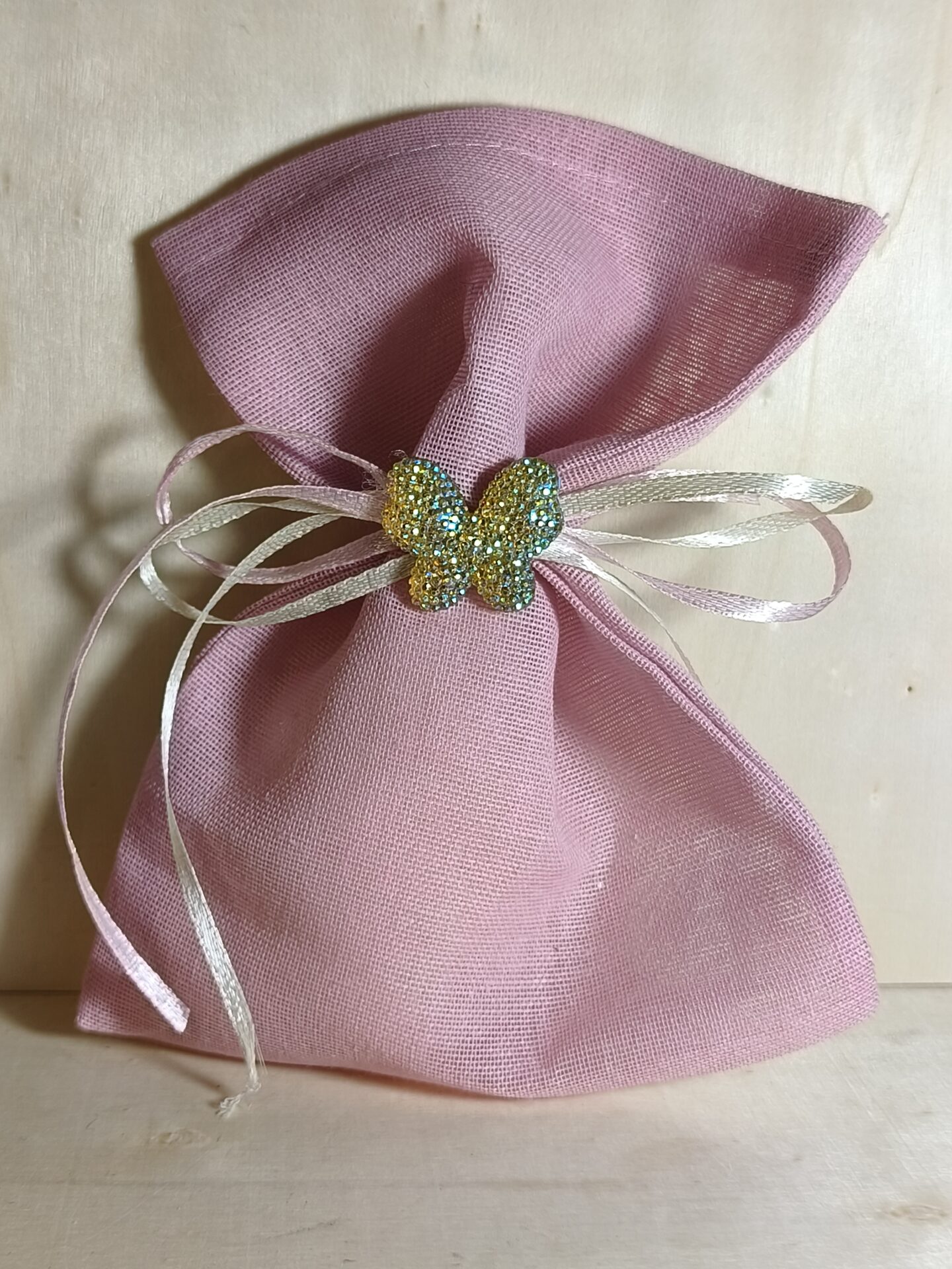Mπομπονιερα Βαπτισης Πουγκι Γαζα+Πεταλουδα
