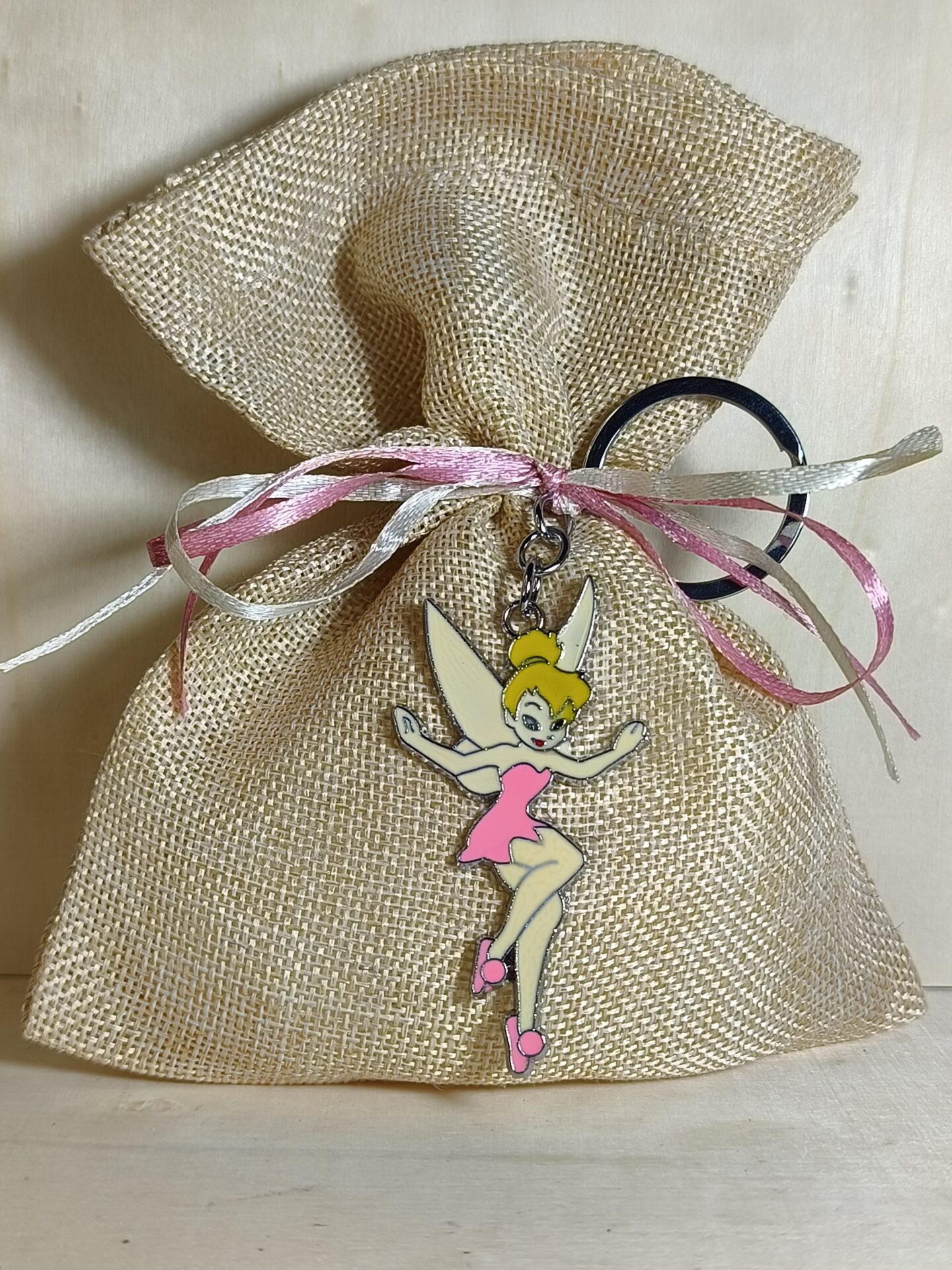 Mπομπονιερα Βαπτισης Πουγκι Καμβας+Tinkerbell Μπρελοκ