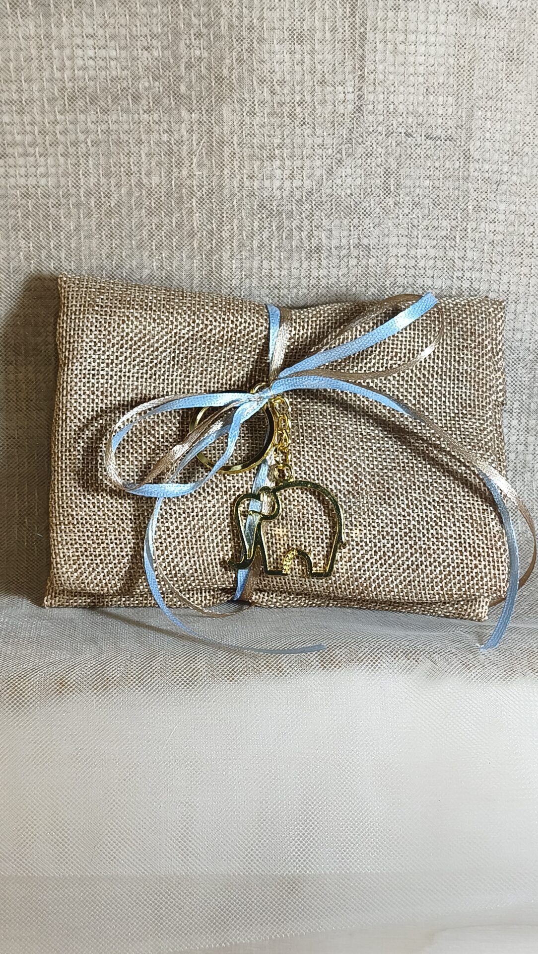 Mπομπονιερα Βαπτισης Πουγκι Καμβας+Ελεφαντακι Μπρελοκ