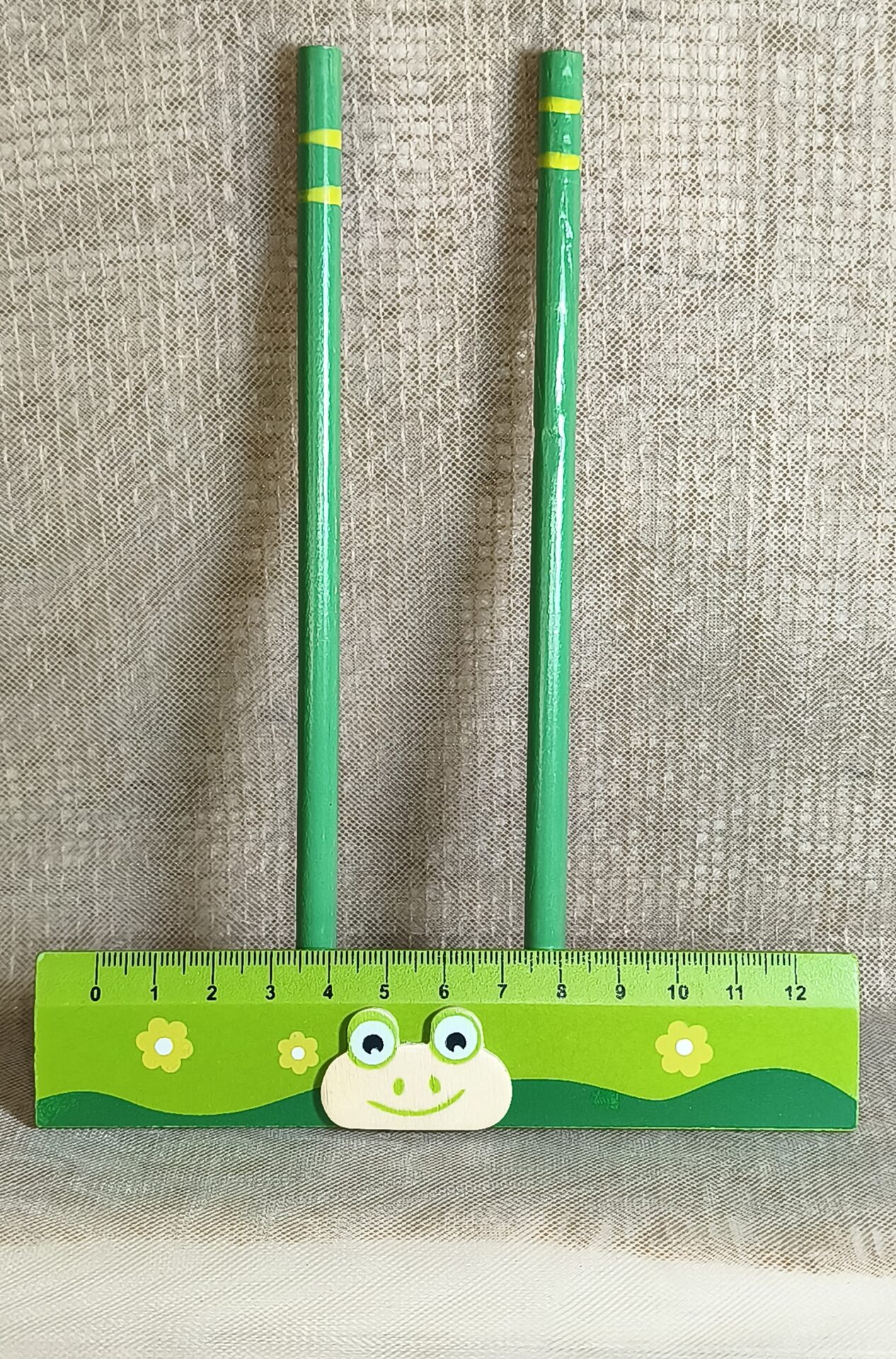 Mπομπονιερα Βαπτισης Βατραχακι Κασετινα Με 2 Μολυβια κ Χαρακα