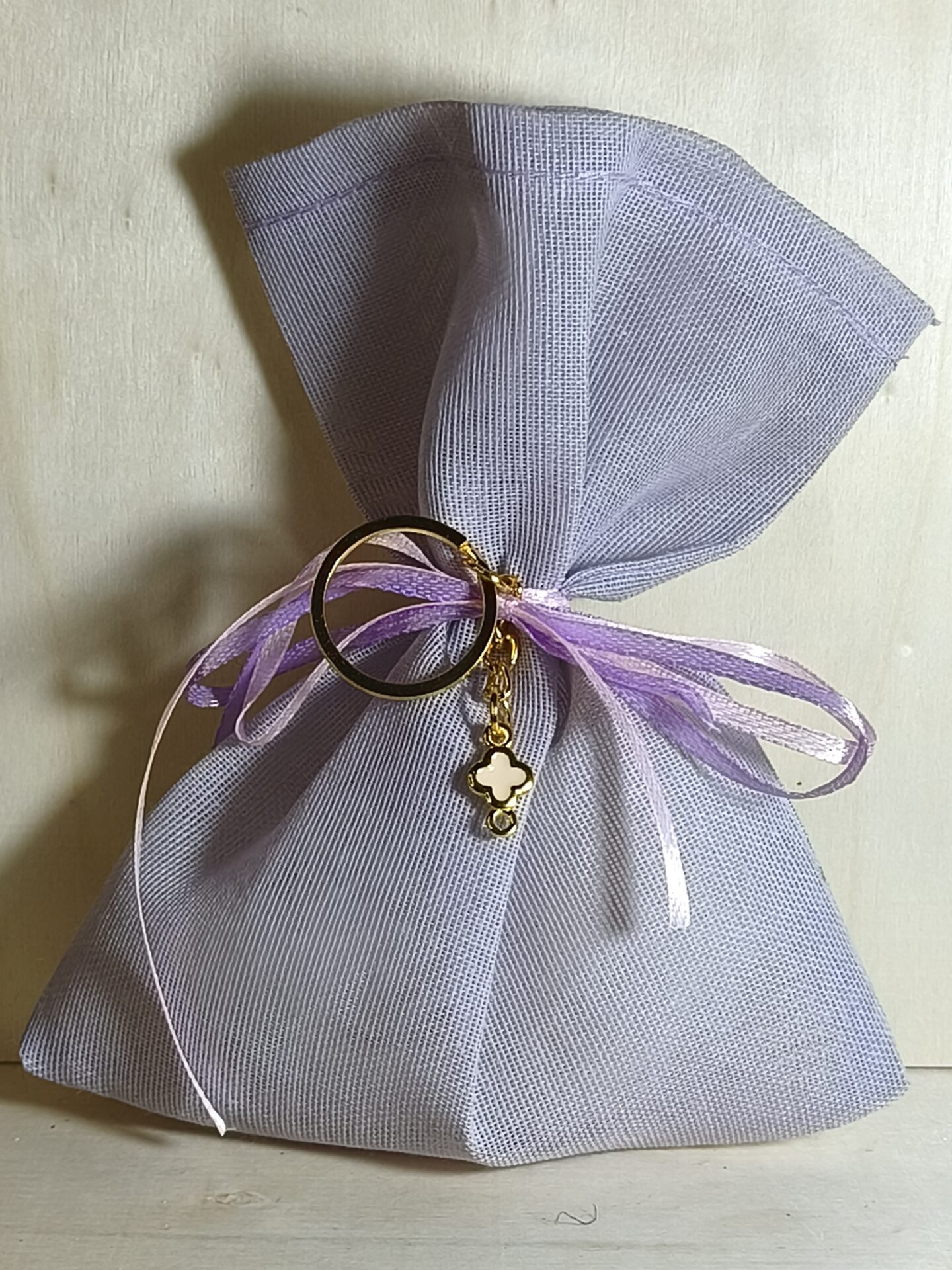 Mπομπονιερα Βαπτισης Πουγκι Γαζα+Σταυρος Μπρελοκ