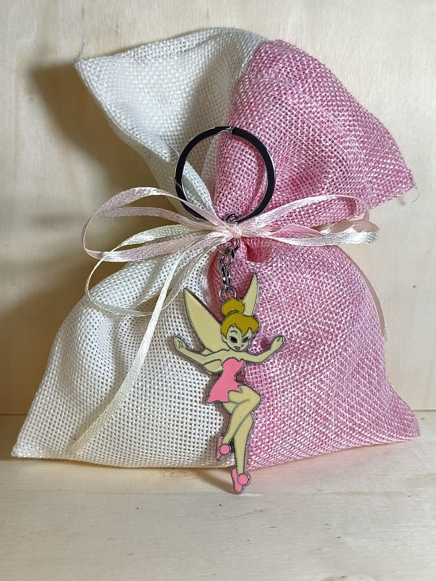 Mπομπονιερα Βαπτισης Πουγκι Καμβας+Tinkerbell Μπρελοκ