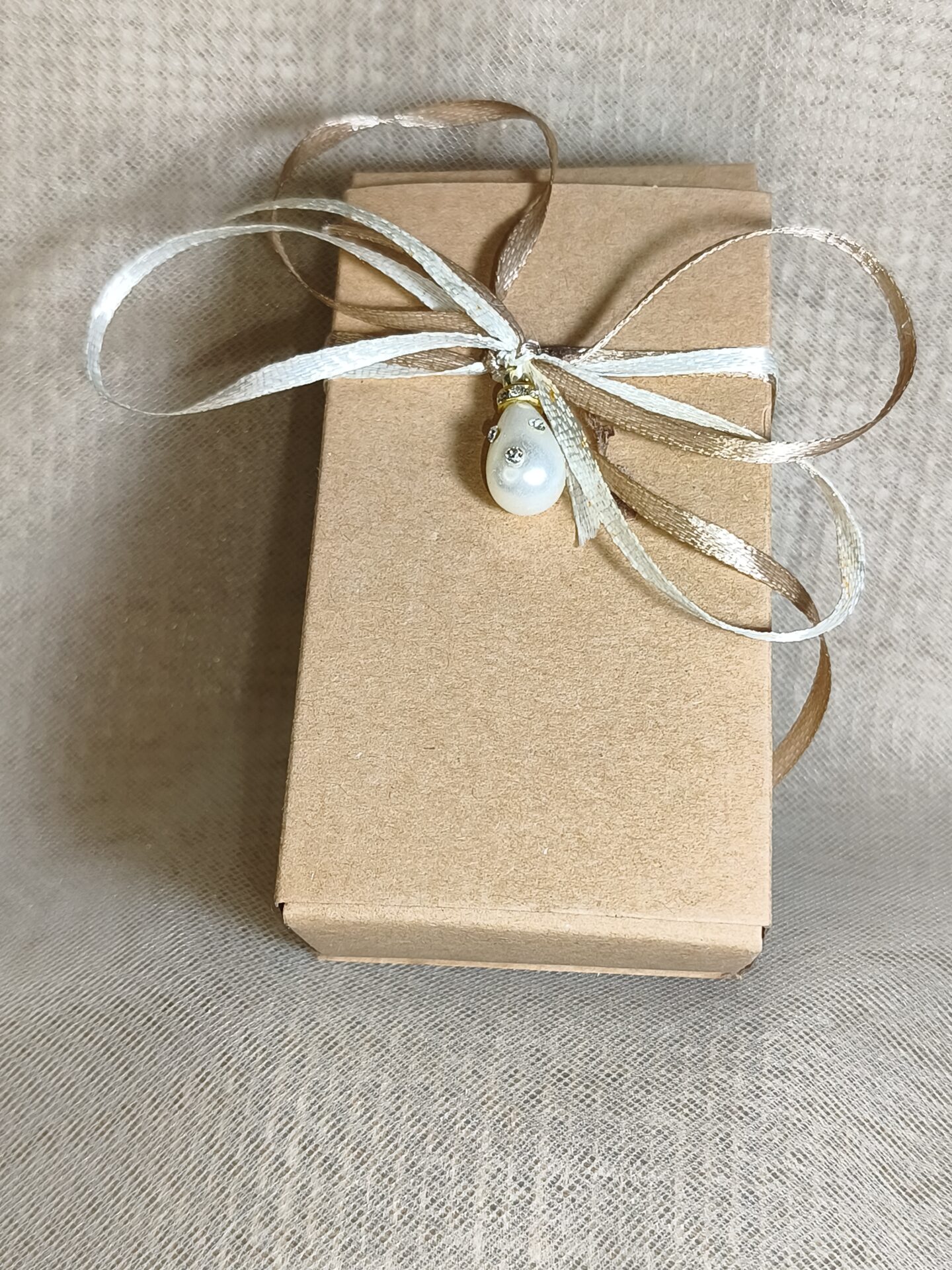 Mπομπονιερα Γαμου Κουτακι Craft +Περλα Με Στρας