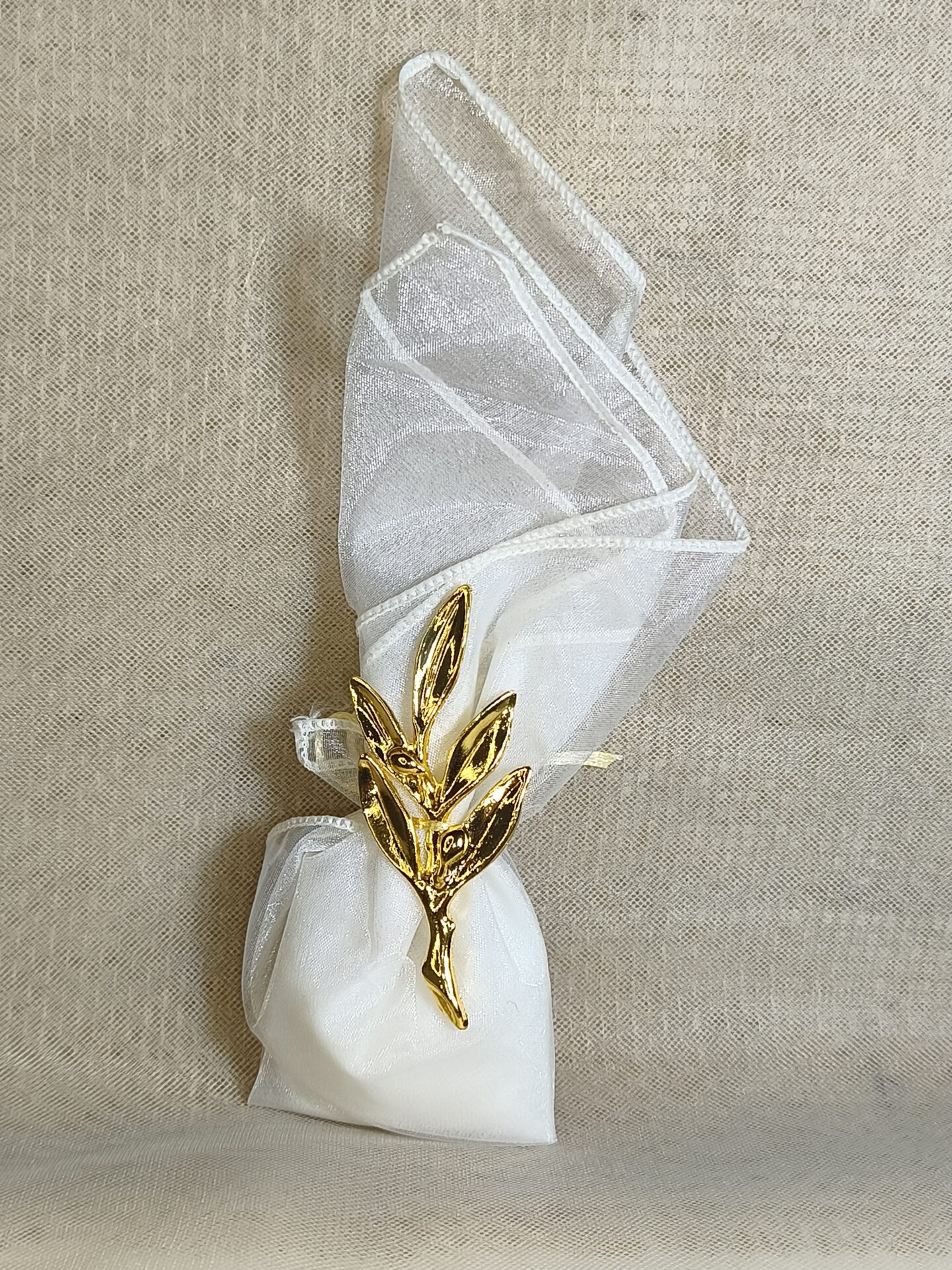 Mπομπονιερα Γαμου Μαντηλι Οργαντινα Με Τελειωμα +Κλαδι Ελιας