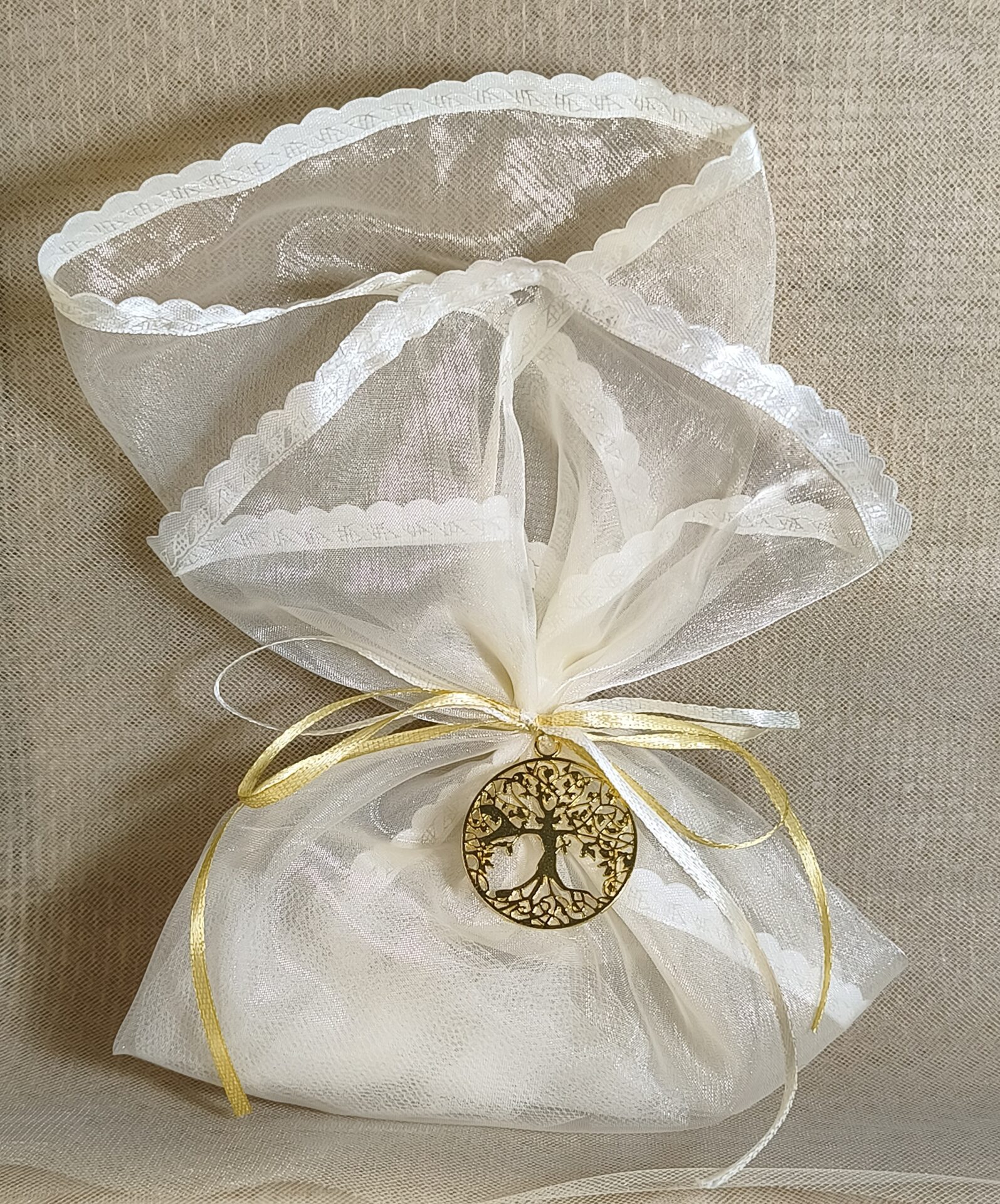 Mπομπονιερα Γαμου Μαντηλι Οργαντινα Με Τελειωμα Σατεν 45cm+Δεντρο Ζωης