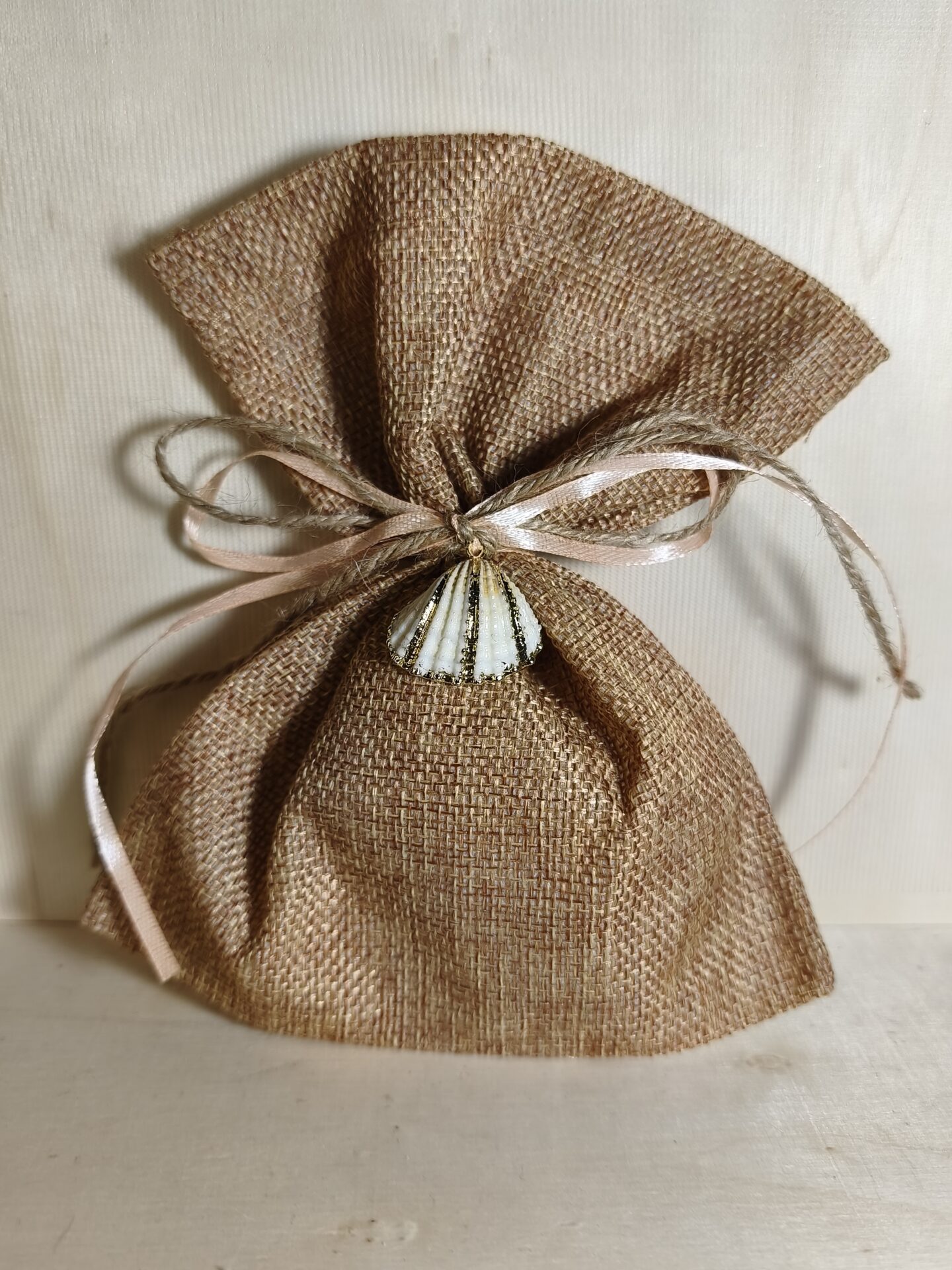 Mπομπονιερα Γαμου Πουγκι Kαμβας+Κοχυλι