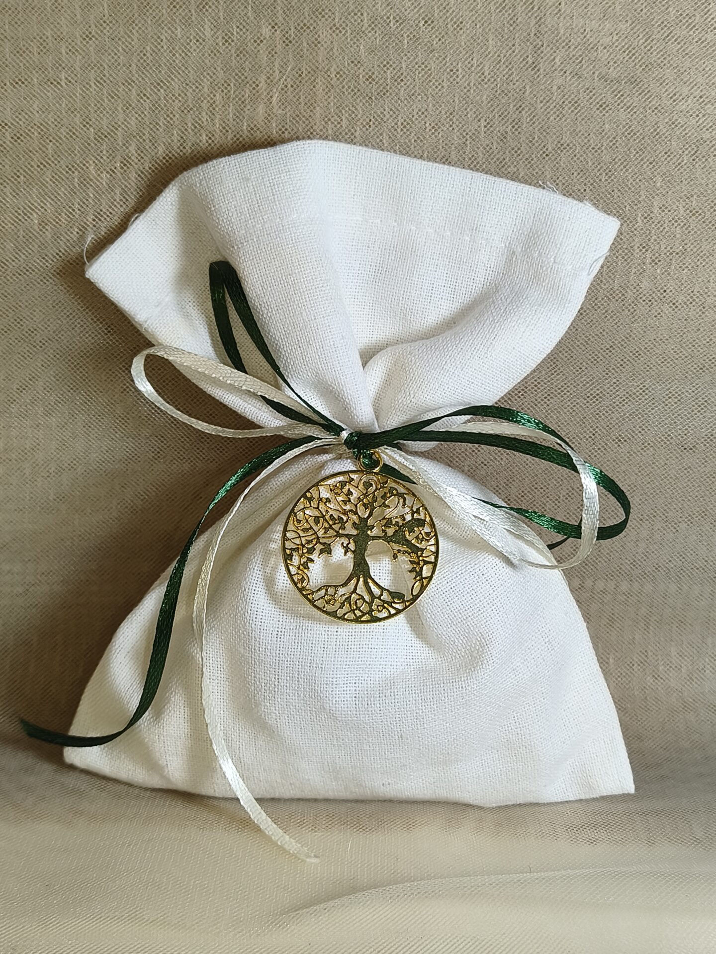 Mπομπονιερα Γαμου Πουγκι Λινο+Δεντρο Ζωης