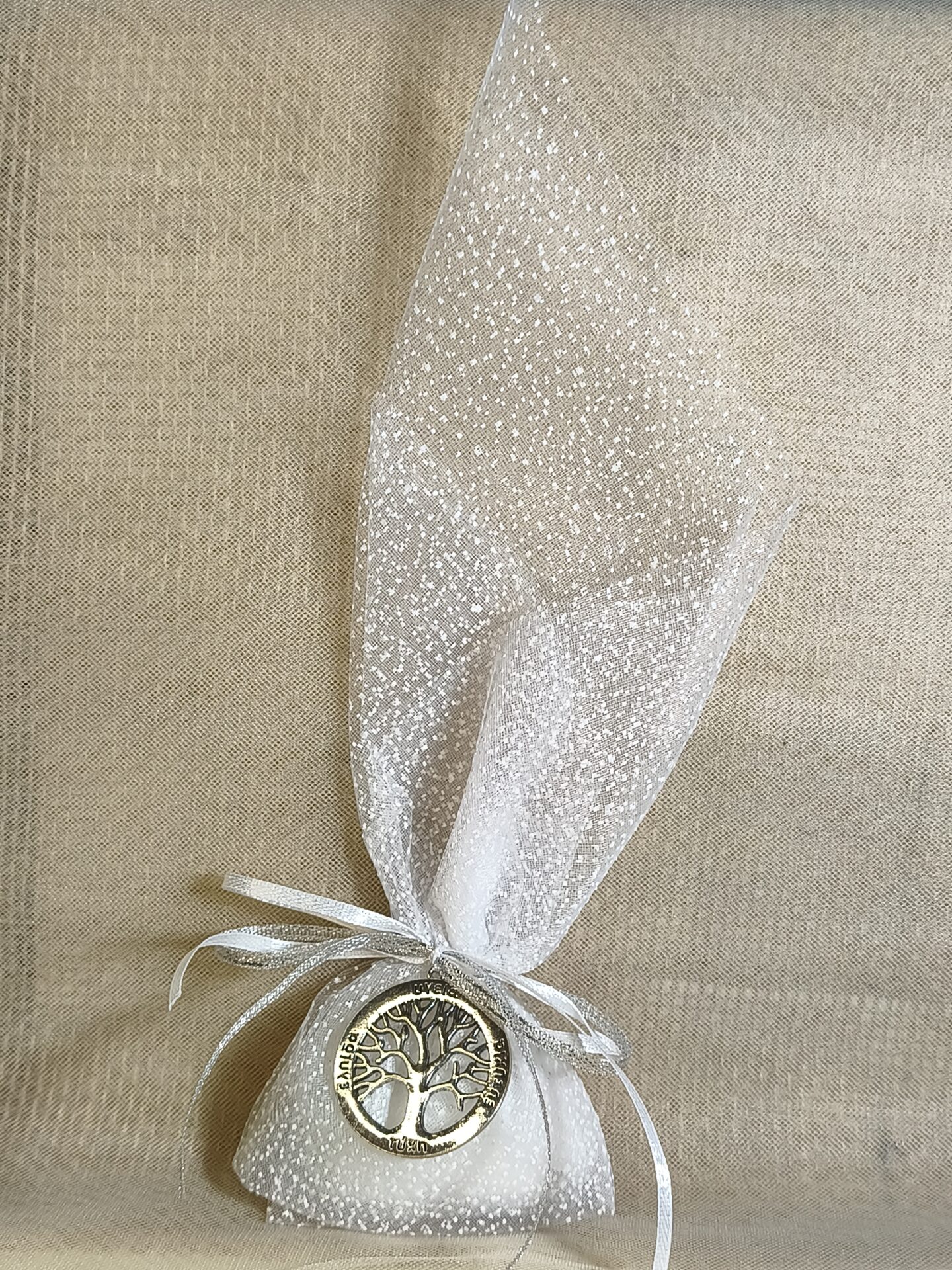 Mπομπονιερα Γαμου Τουλι Χιονε Στρας +Δεντρο Ζωης Ευχες
