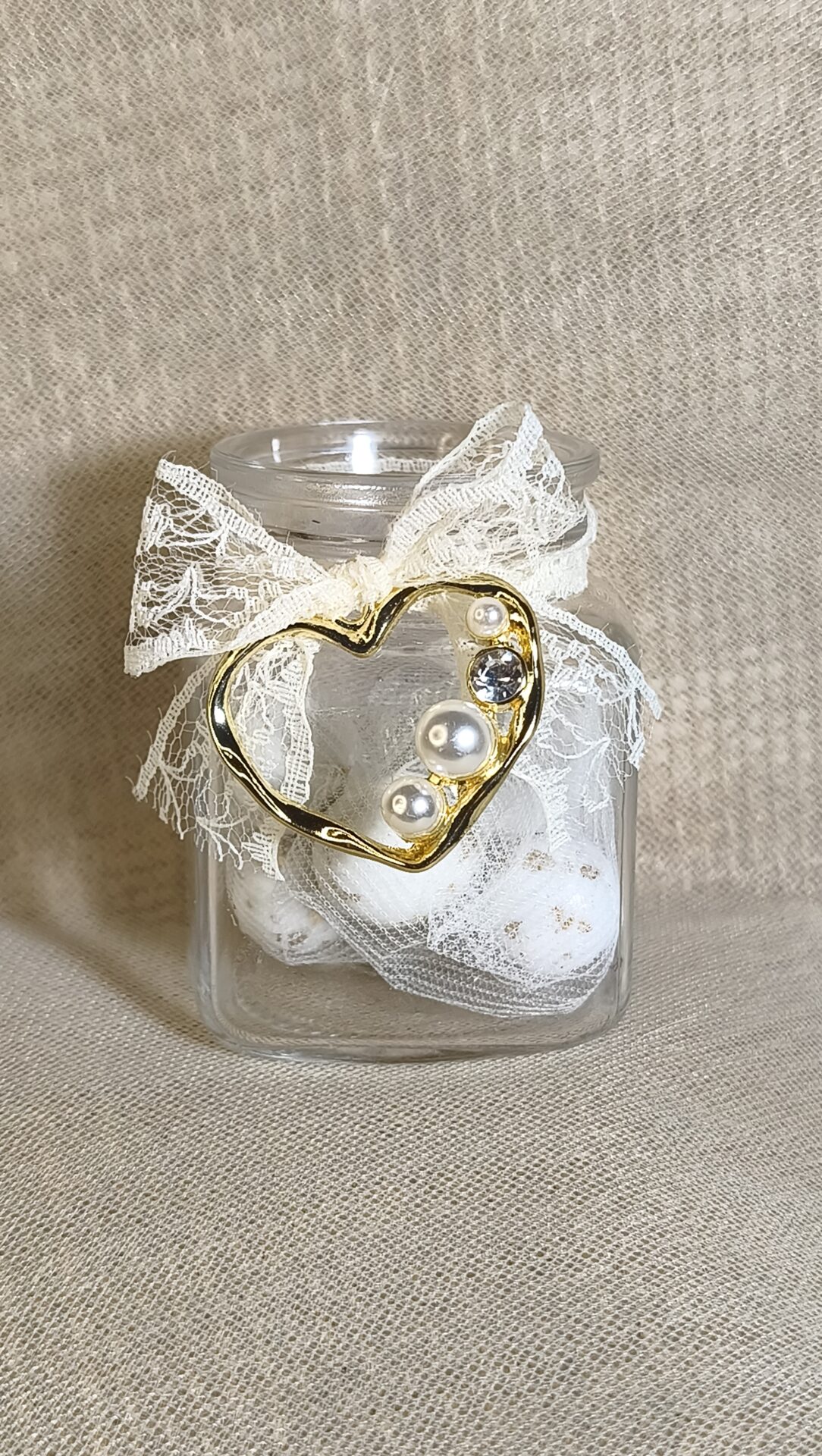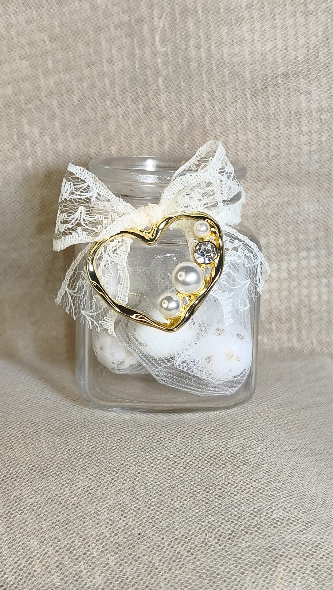 Mπομπονιερα Γαμου Βαζακι 4,5χ6cm+Καρδια Με Περλα Στρας