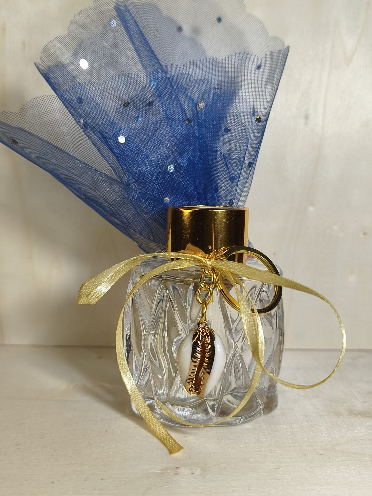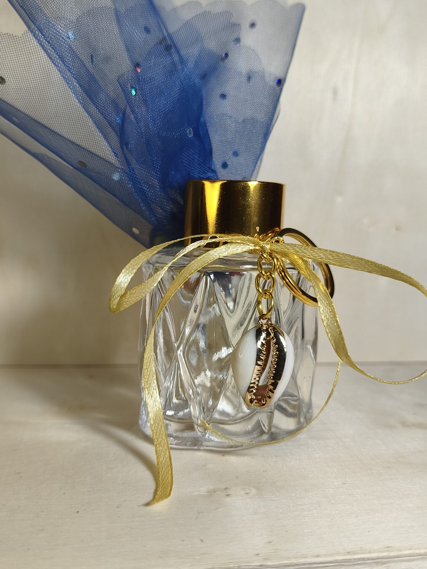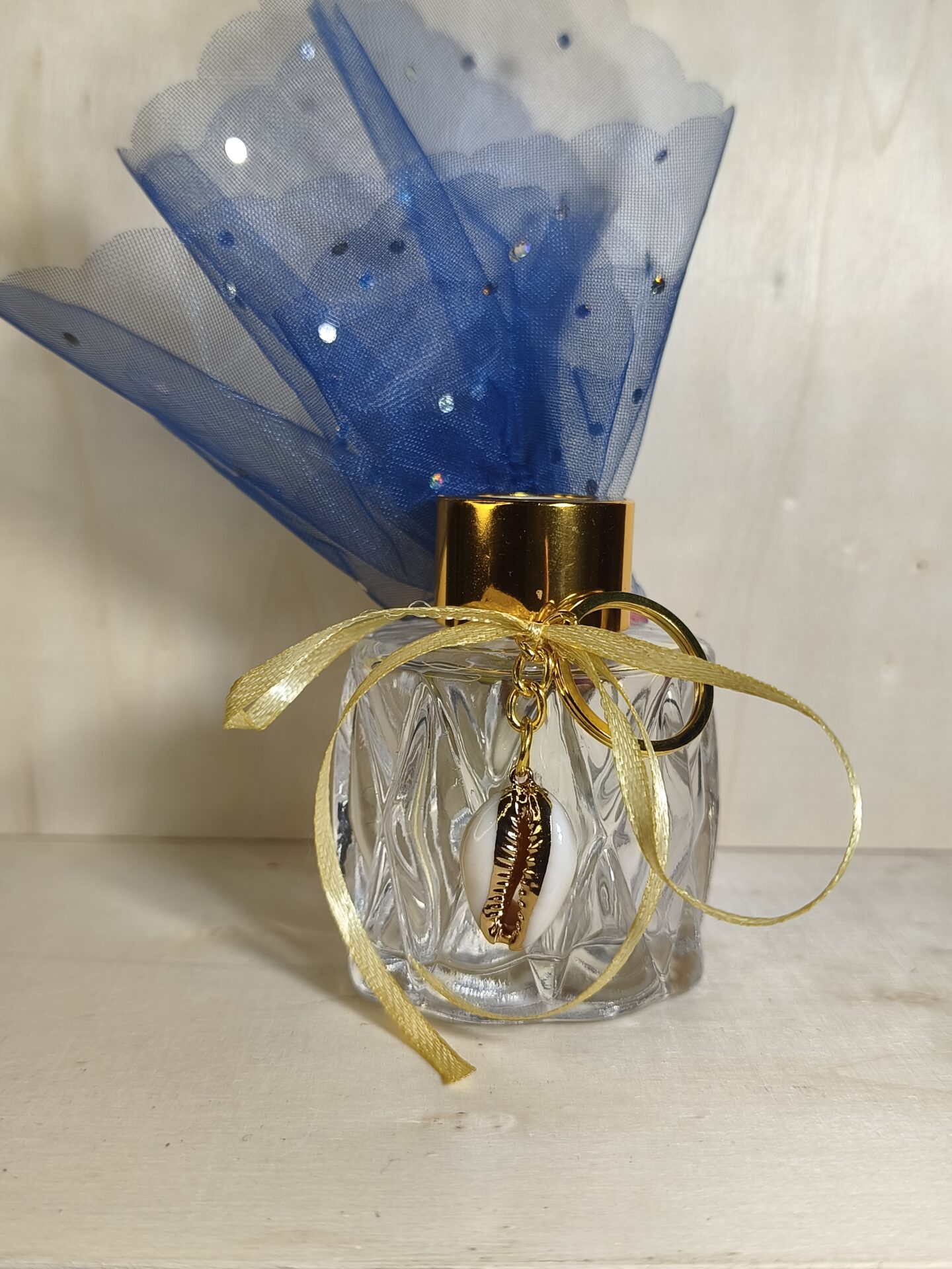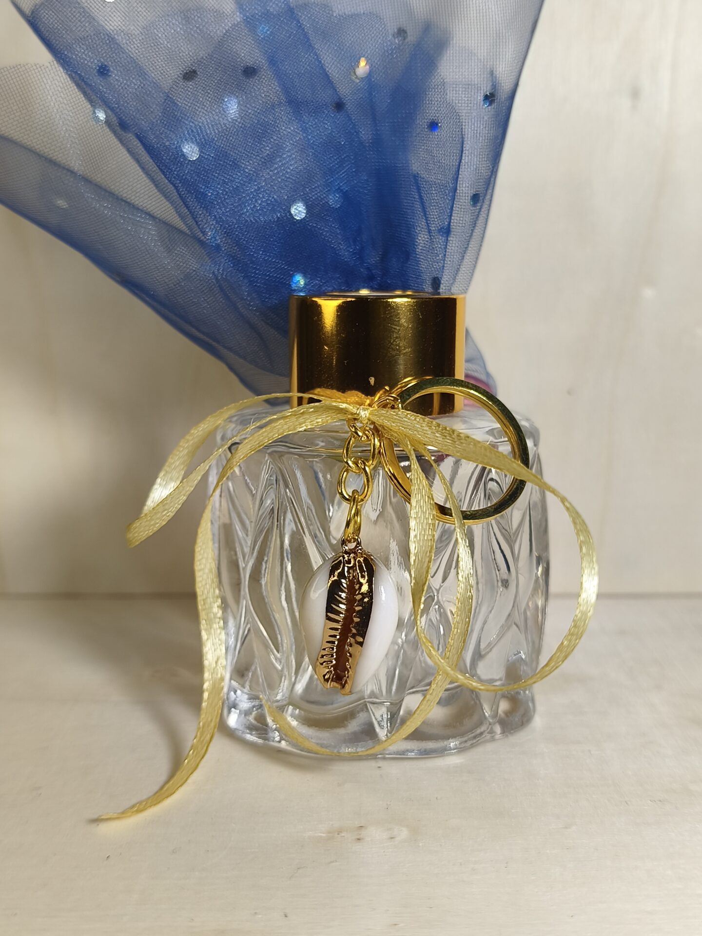 Mπομπονιερα Βαπτισης Μπουκαλι Αρωματος+Κοχυλι Μπρελοκ