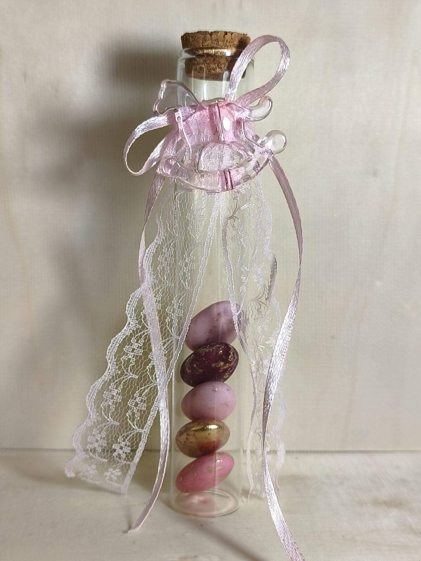 Mπομπονιερα Βαπτισης Δοκιμαστικος Σωληνας  15χ2,5cm+Αλογακι Με Δαντελα