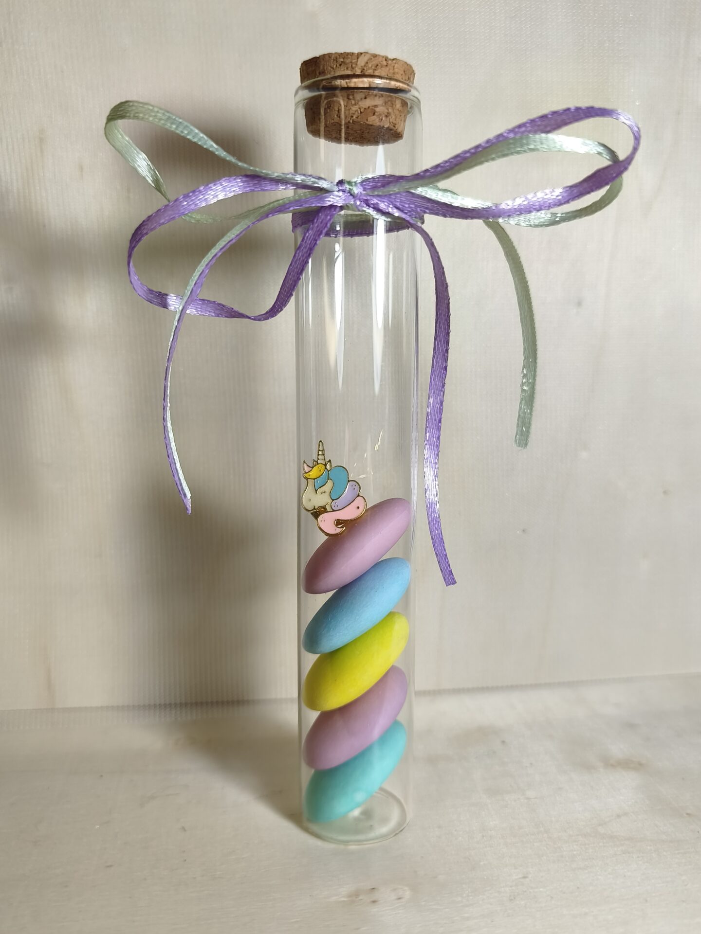 Mπομπονιερα Βαπτισης Δοκιμαστικος Σωληνας  15χ2,5cm +Μονοκερος Καρφιτσα