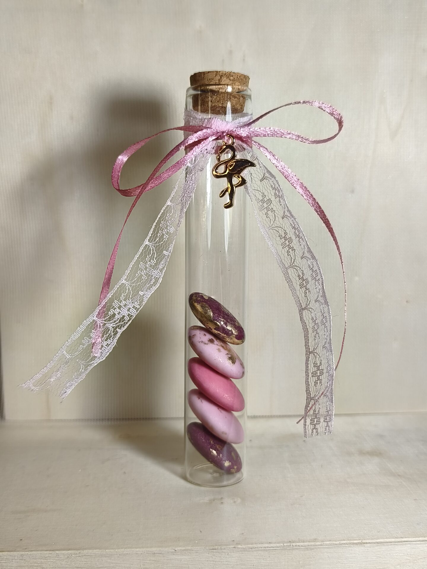 Mπομπονιερα Βαπτισης Δοκιμαστικος Σωληνας 15χ2,5cm+Φλαμινγκο Με Δαντελα