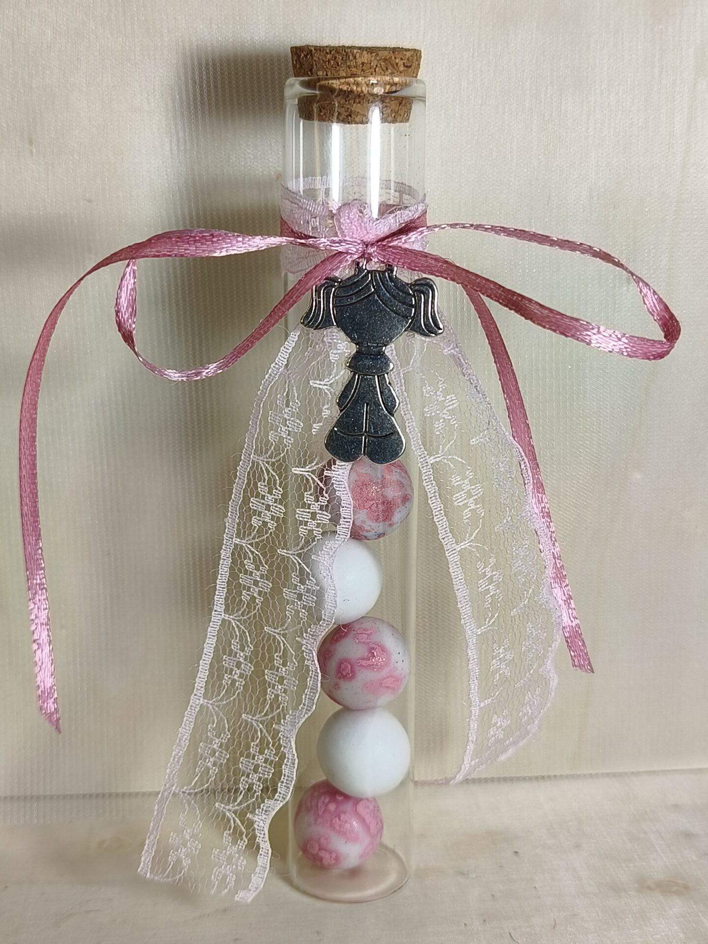Mπομπονιερα Βαπτισης Δοκιμαστικος Σωληνας 15χ2,5cm +Κοριτσακι Με Δαντελα