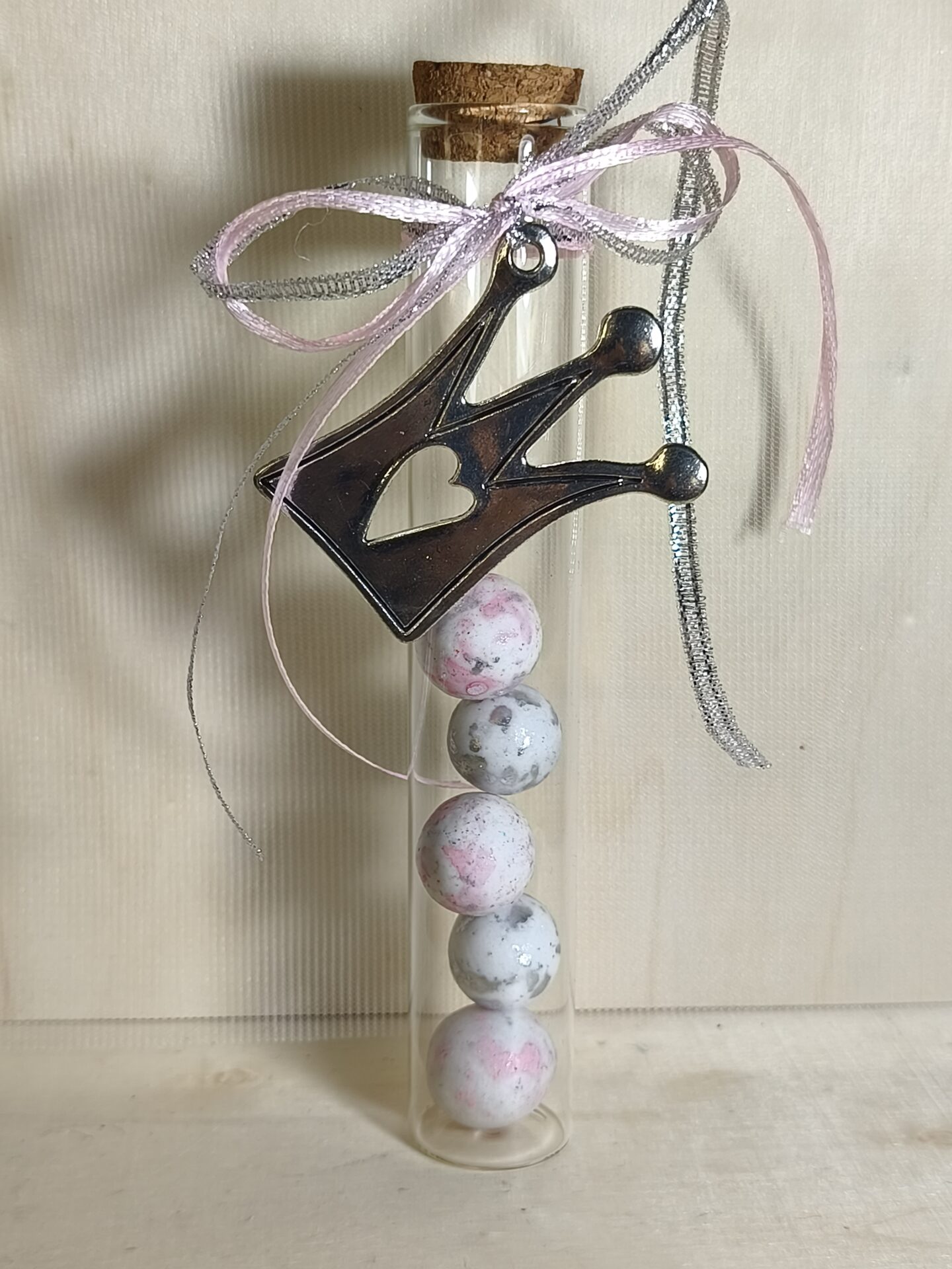 Mπομπονιερα Βαπτισης Δοκιμαστικος Σωληνας  15χ2,5cm+Κορωνα Καρδια