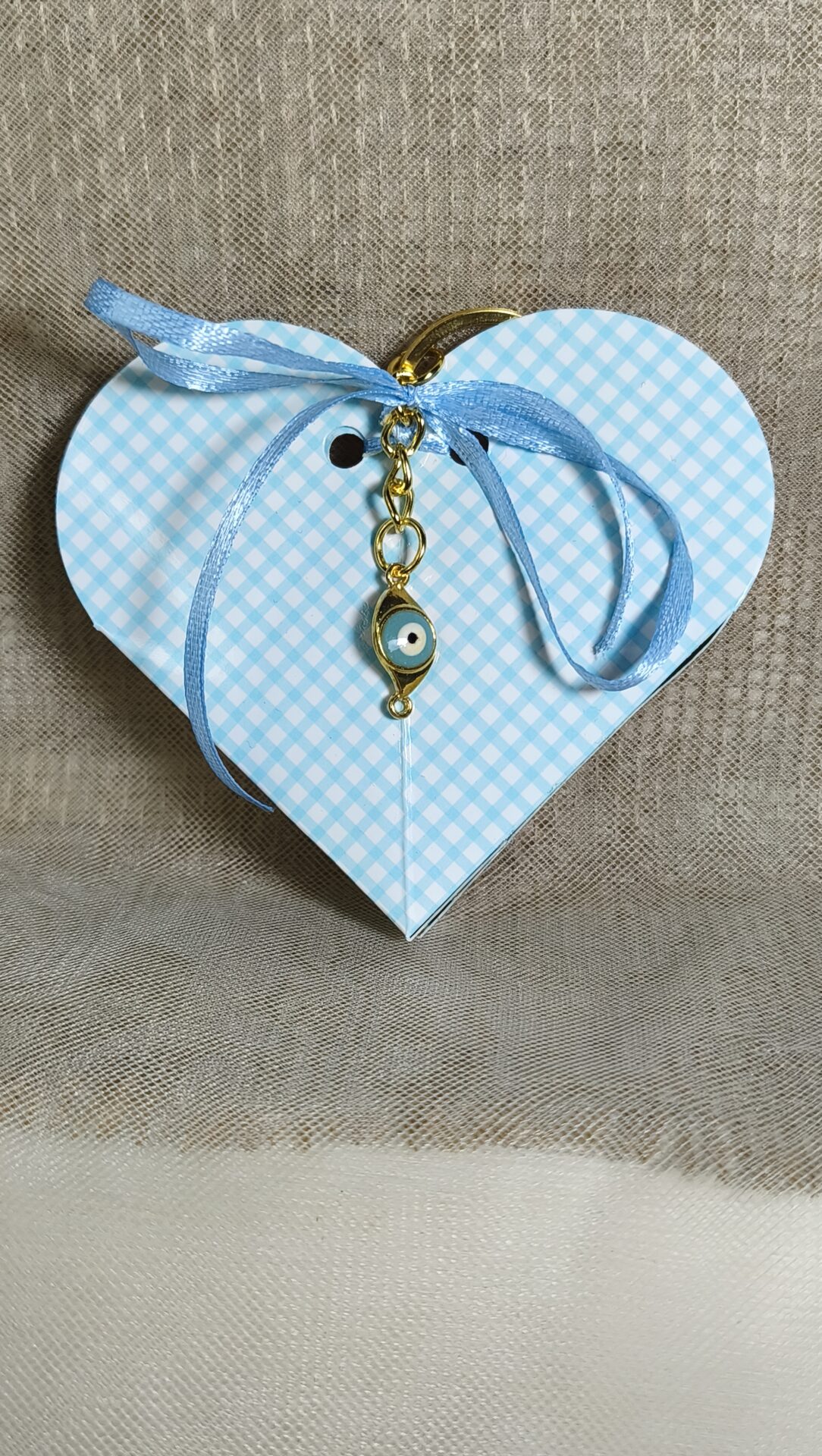 Mπομπονιερα Βαπτισης Κουτακι Καρδια Καρω Σιελ  9χ10cm +Ματακι Μπρελοκ