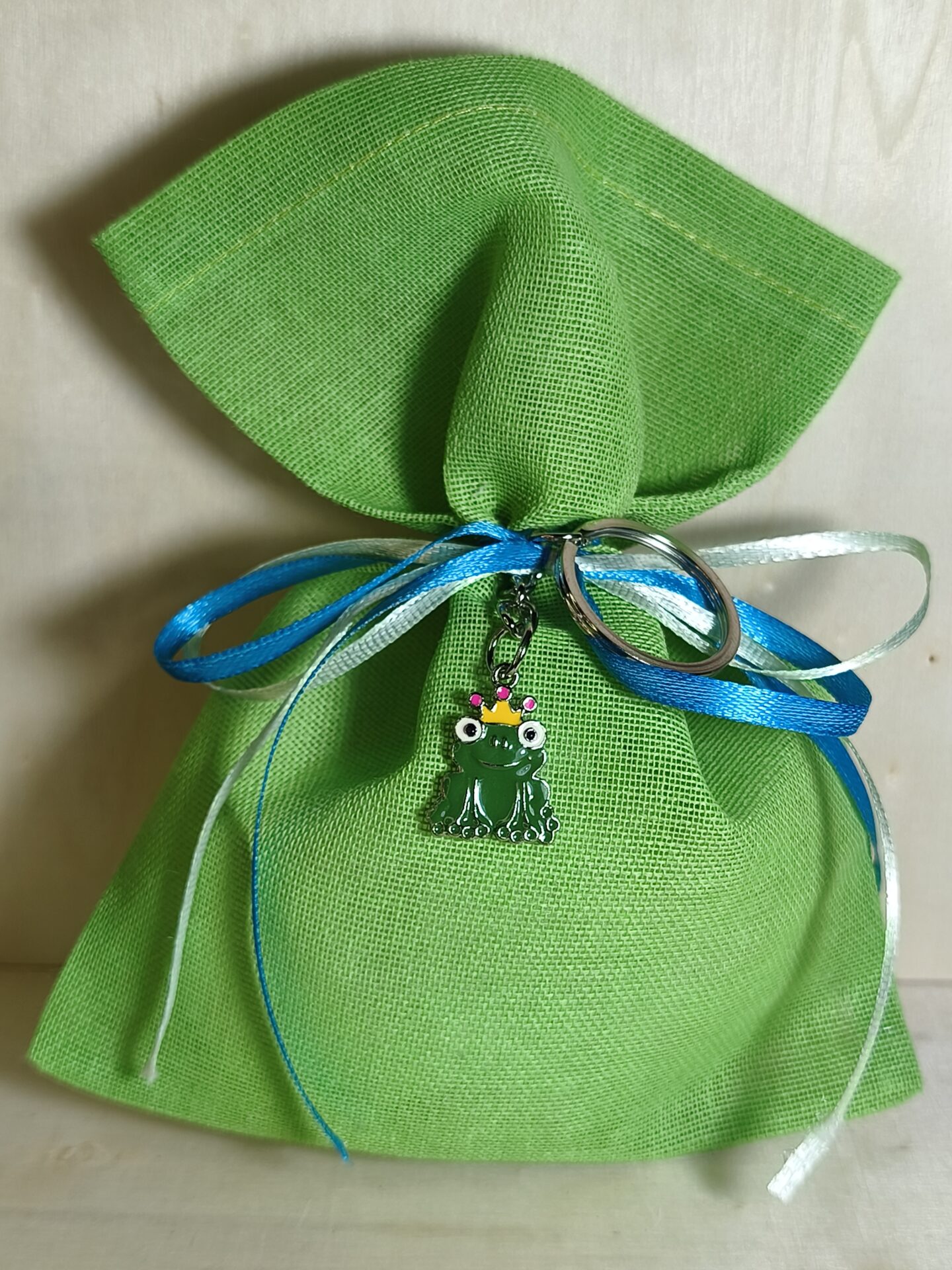Mπομπονιερα Βαπτισης Πουγκι Γαζα+Βατραχακι Μπρελοκ