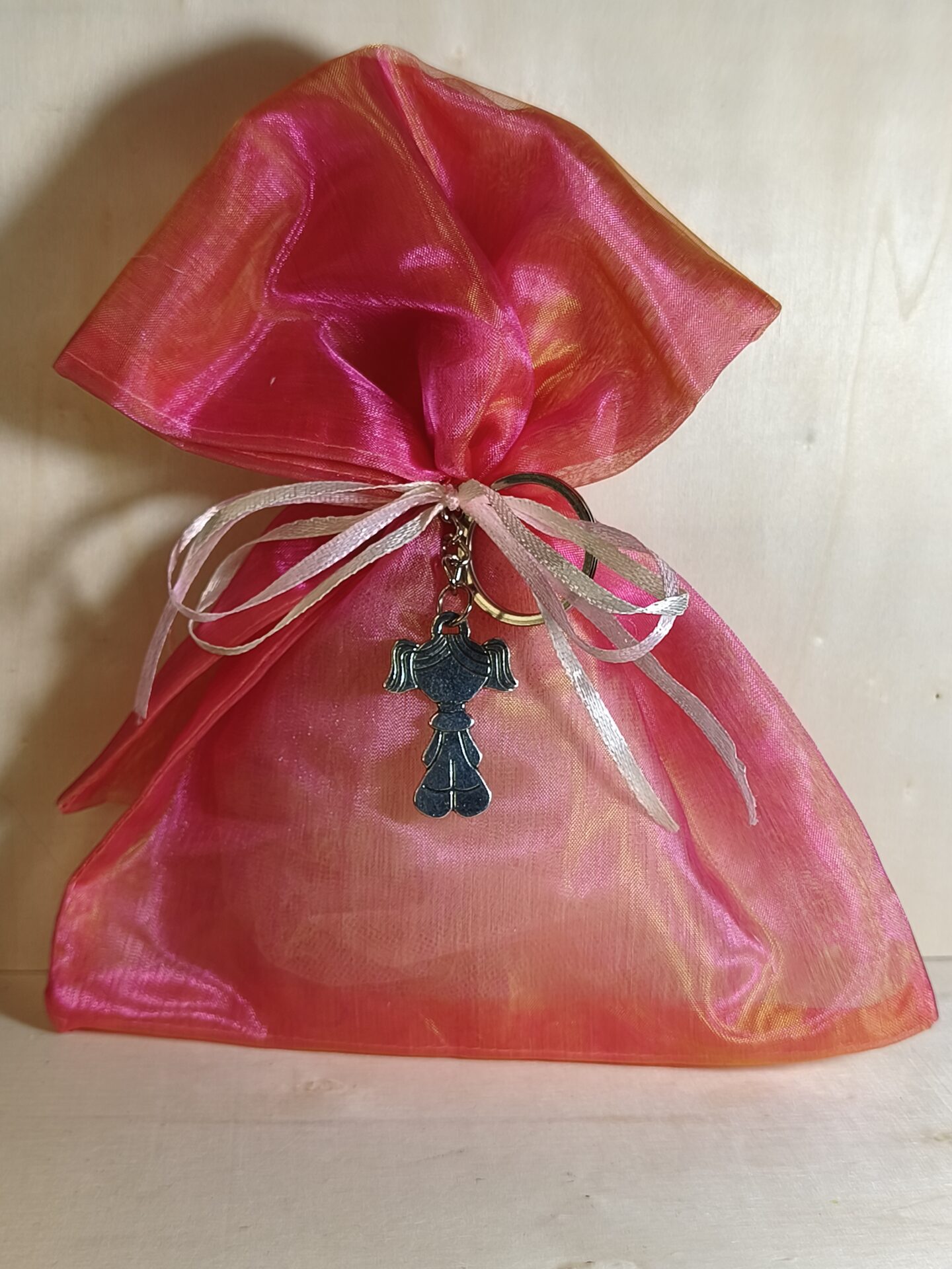 Mπομπονιερα Βαπτισης Πουγκι Οργαντινα+Κοριτσακι Μπρελοκ