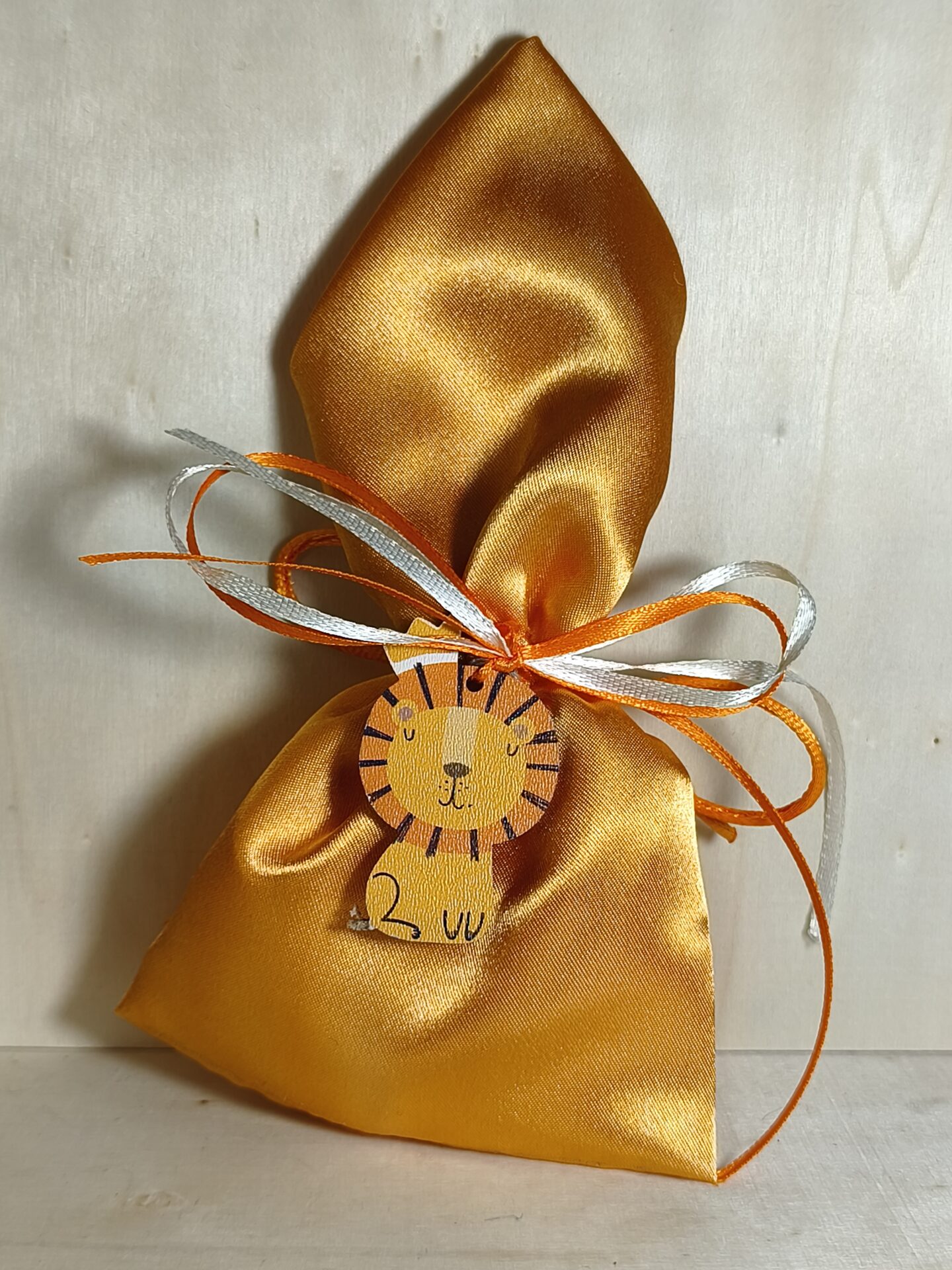 Mπομπονιερα Βαπτισης Πουγκι Ψαθα+Λιονταρακι Μαγνητακι