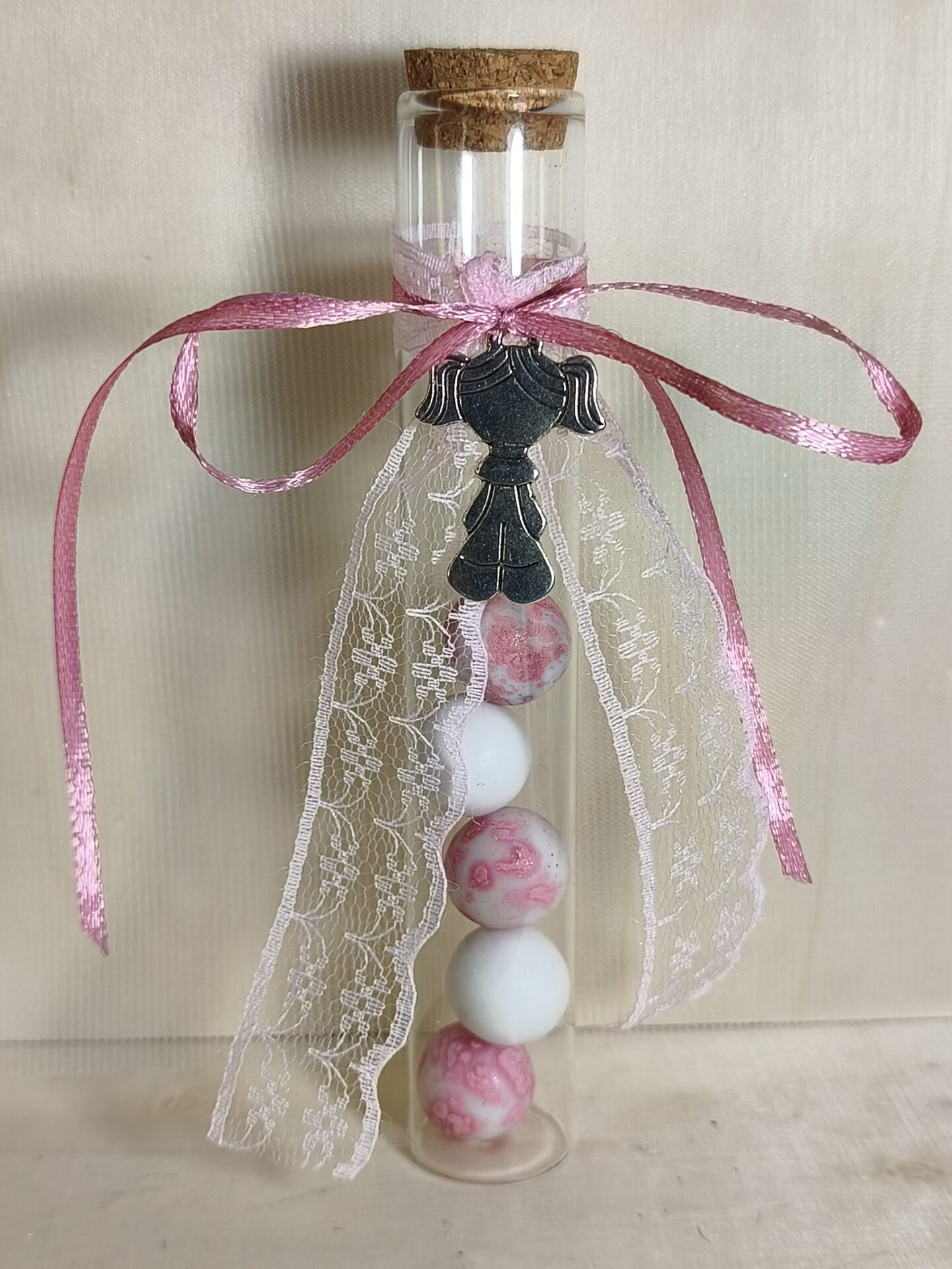 Mπομπονιερα Βαπτισης Δοκιμαστικος Σωληνας+Μπρελοκ Για Κοριτσακι Με Δαντελα