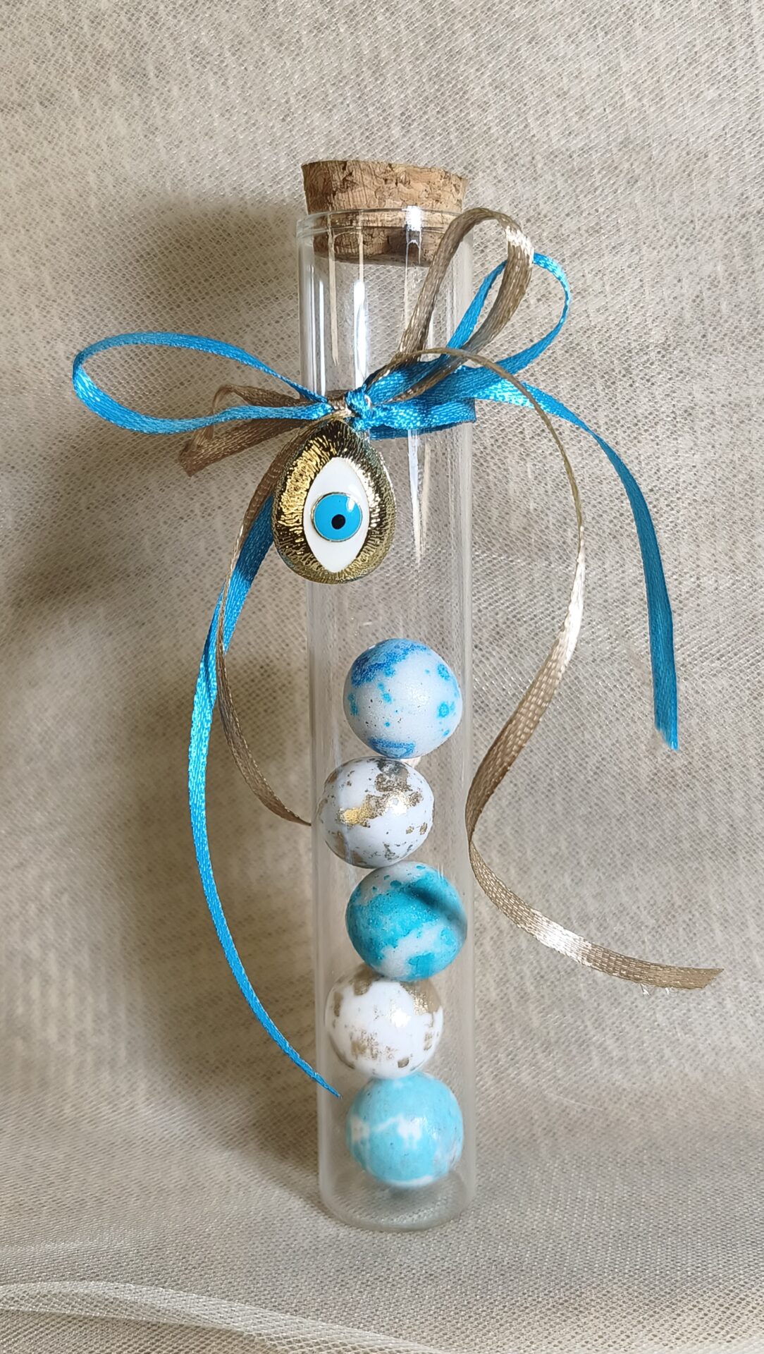 Mπομπονιερα Βαπτισης Δοκιμαστικος Σωληνας+Ματακι Σιελ
