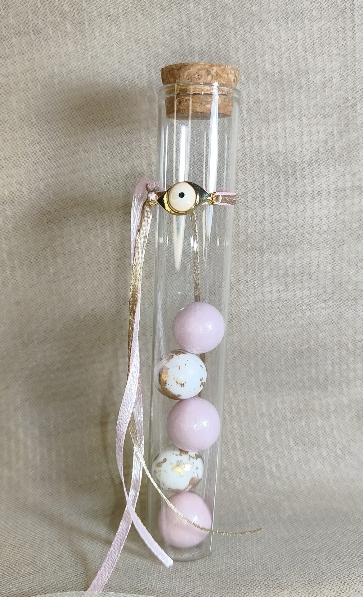 Mπομπονιερα Βαπτισης Δοκιμαστικος Σωληνας+Ματακι Χρυσο Ροζ