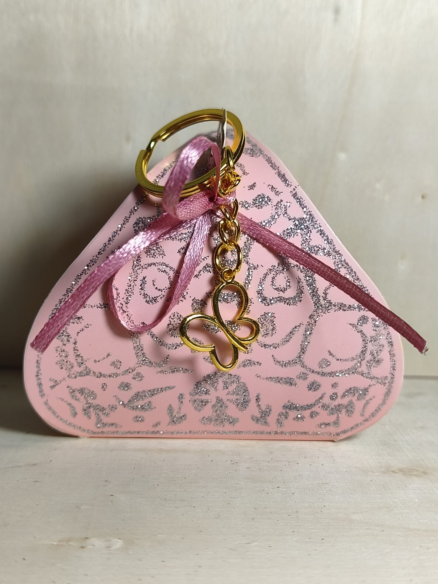 Mπομπονιερα Βαπτισης Κουτακι Καρω Ροζ+Ματακι Μπρελοκ