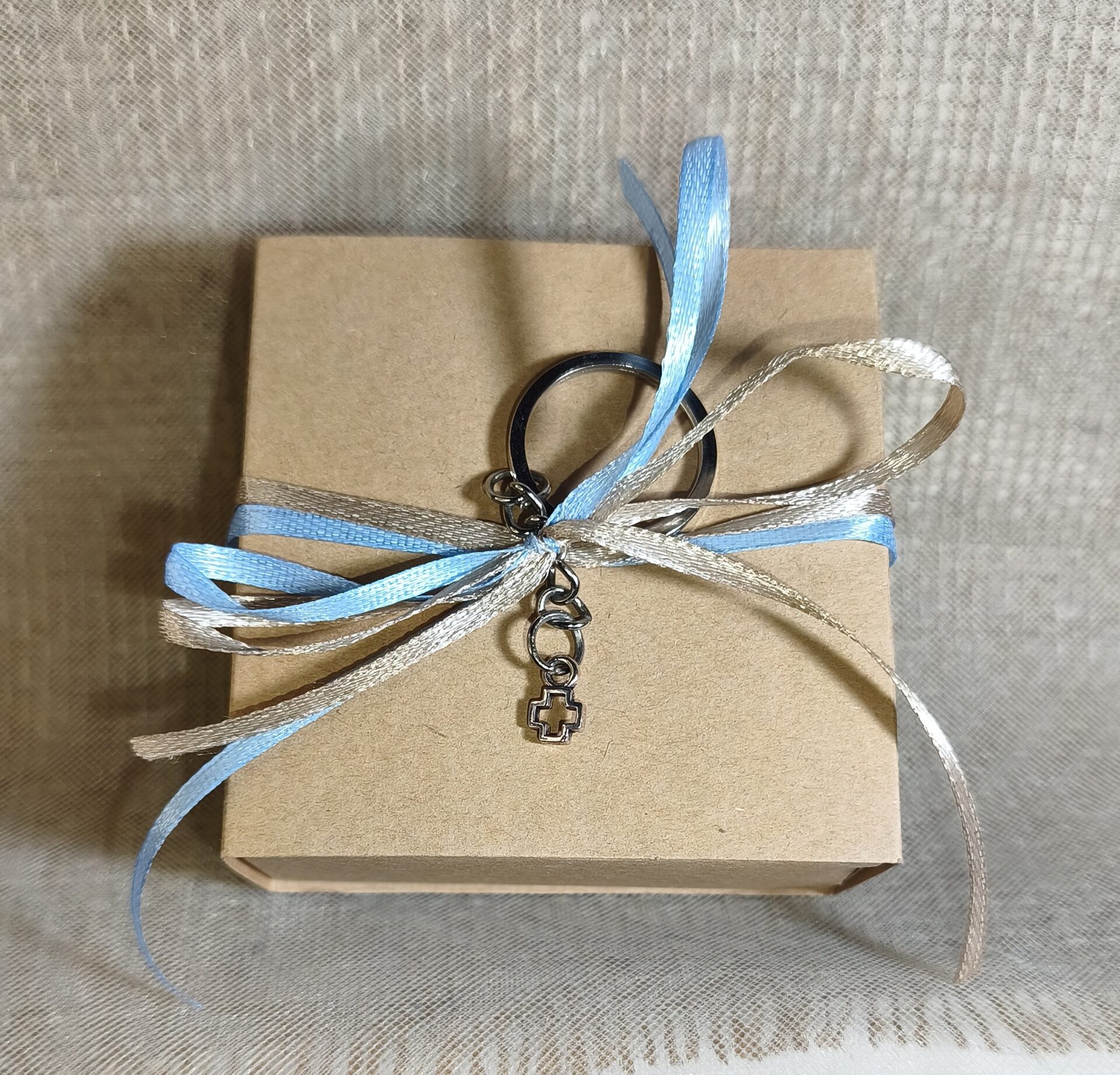 Mπομπονιερα Βαπτισης Κουτακι Craft+Σταυρος Μπρελοκ