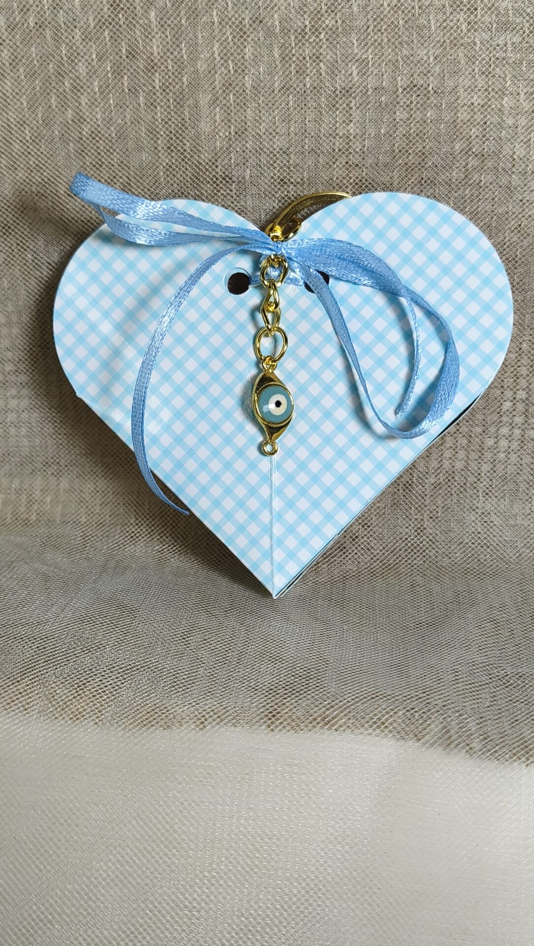 Mπομπονιερα Βαπτισης Κουτακι Καρδια Καρω Σιελ+Ματακι Μπρελοκ